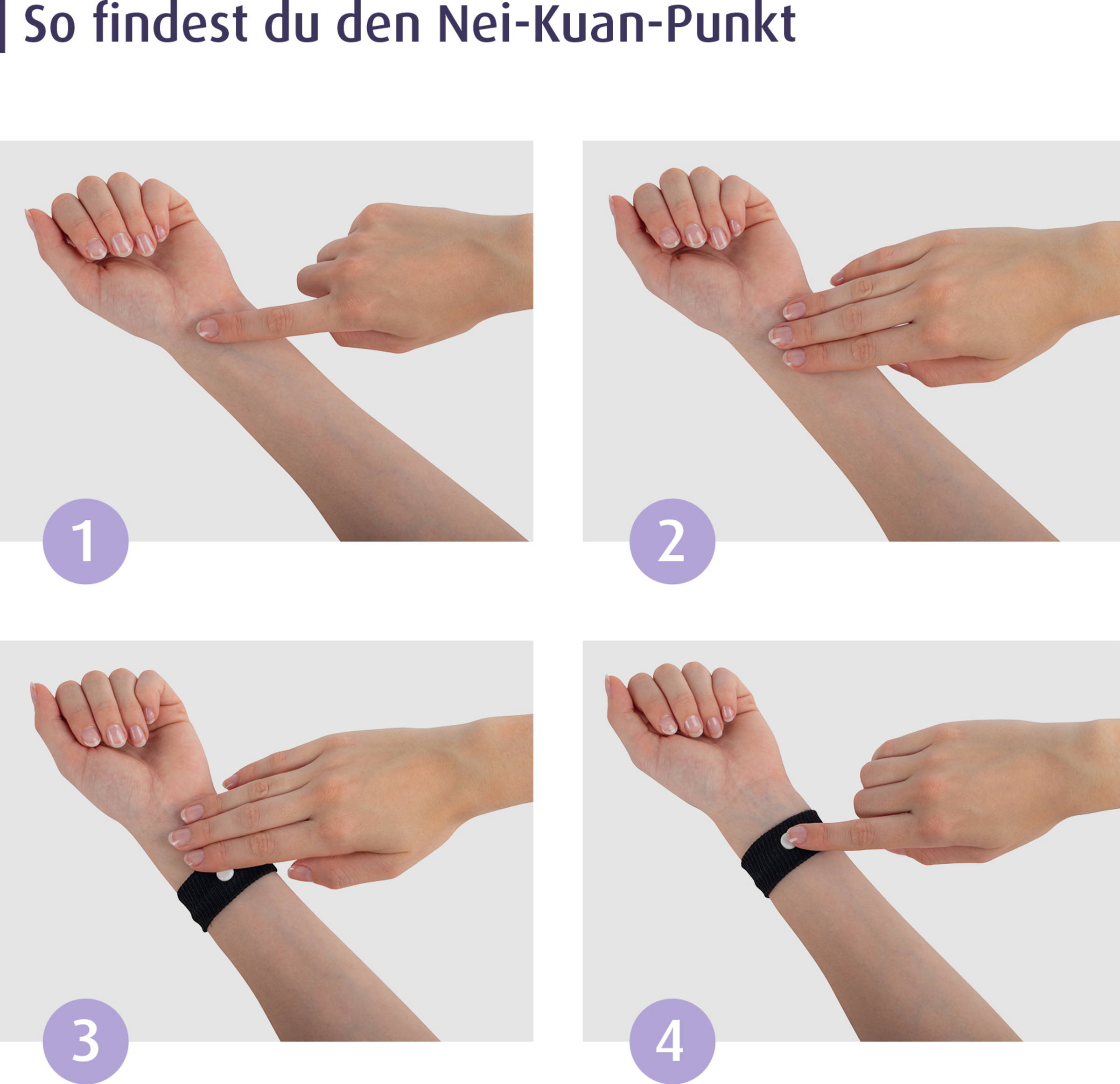 - Bandinnenseite stimuliert den Akupressurpunkt „Nai-Kuan“