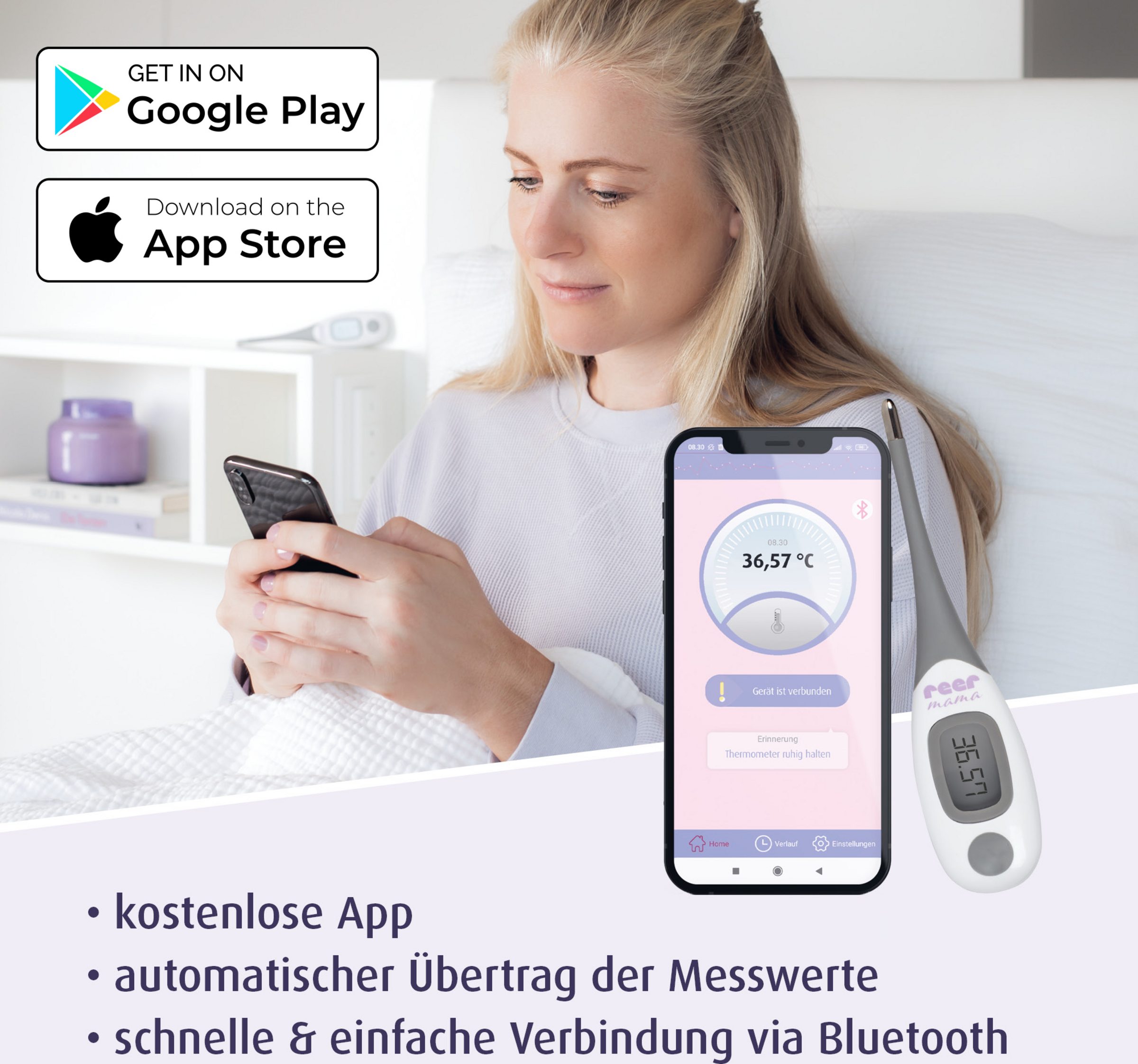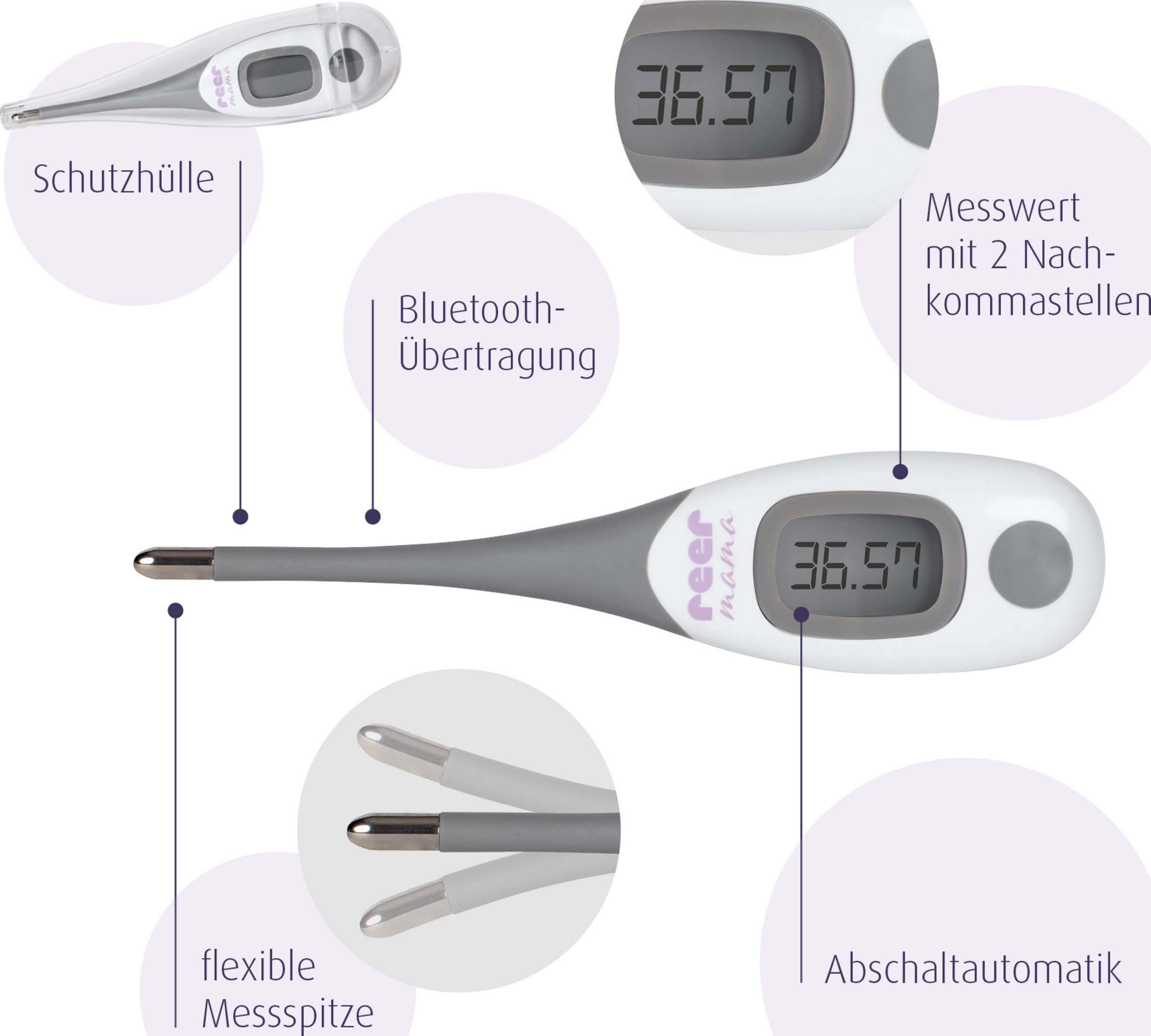 · erhöht die Wahrscheinlichkeit einer Schwangerschaft durch Ermittlung der fruchtbaren Tage· hohe Messgenauigkeit: zwei Nachkommastellen· perfekt für die Messung der Basal-Temperatur· flexible Spitze· Abschaltautomatik· inkl. kostenloser App zur Dokumentation der Messwerte· Messort: in der Mundhöhle (oral)Inhalt: 1x Thermometer, 1x CR2032 Batterie, 1x Schutzhülle, 1x Gebrauchsanleitung