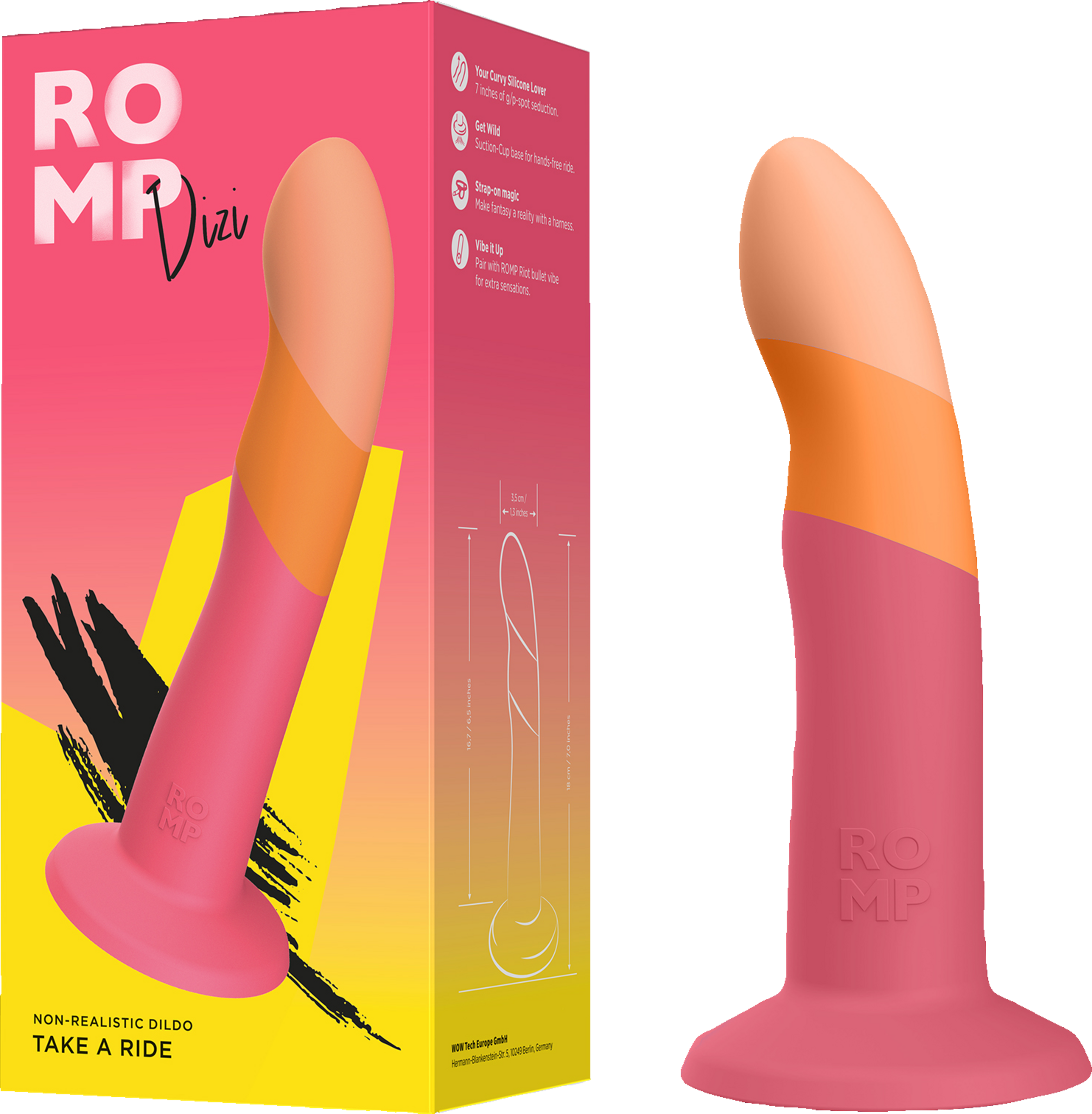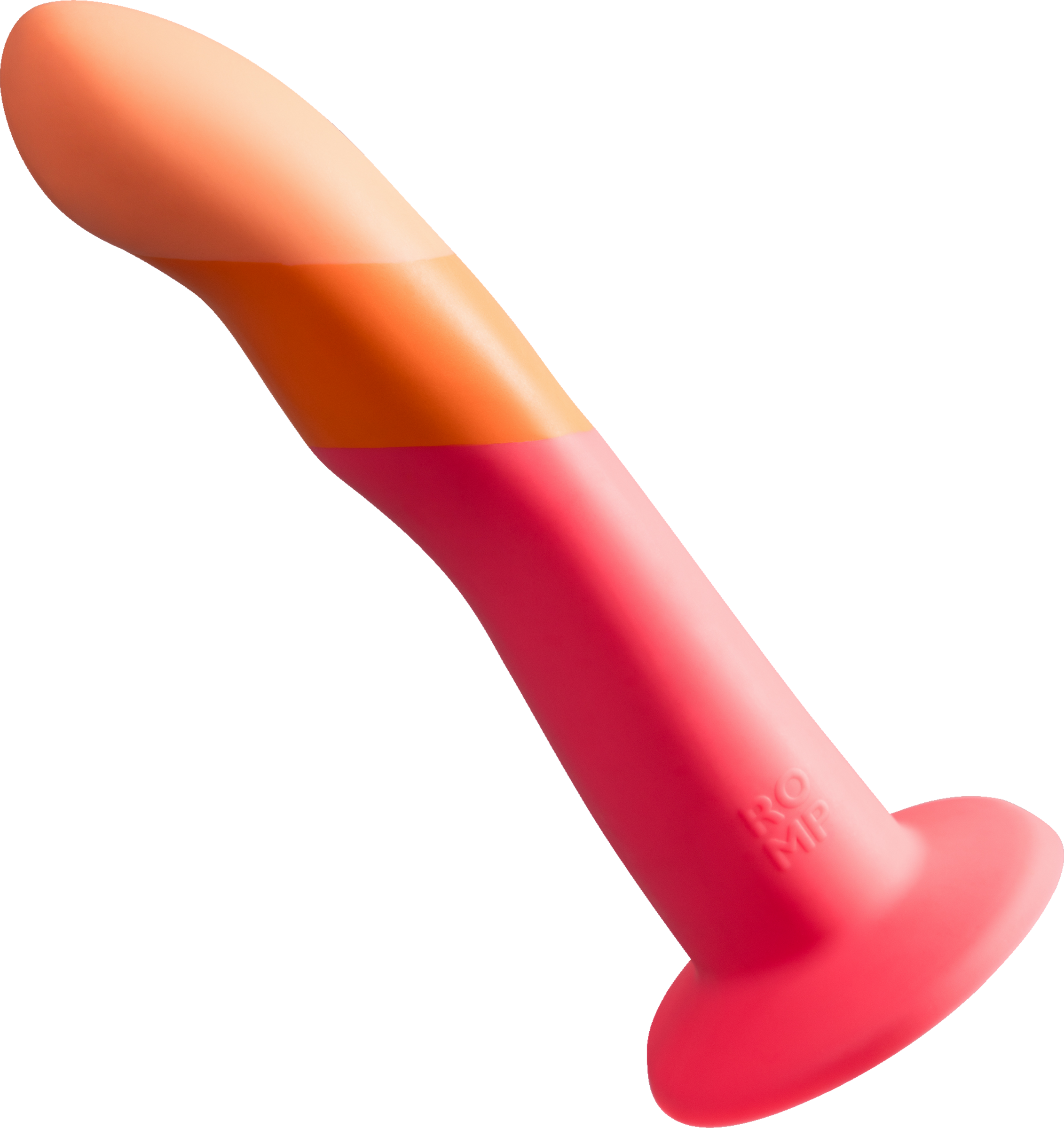 Der gebogene Schaft von ROMP Dizi bietet 7 Zoll glatte, seidige Verführung, die die Stimulation von P- und G-Punkt in den Mittelpunkt rückt.