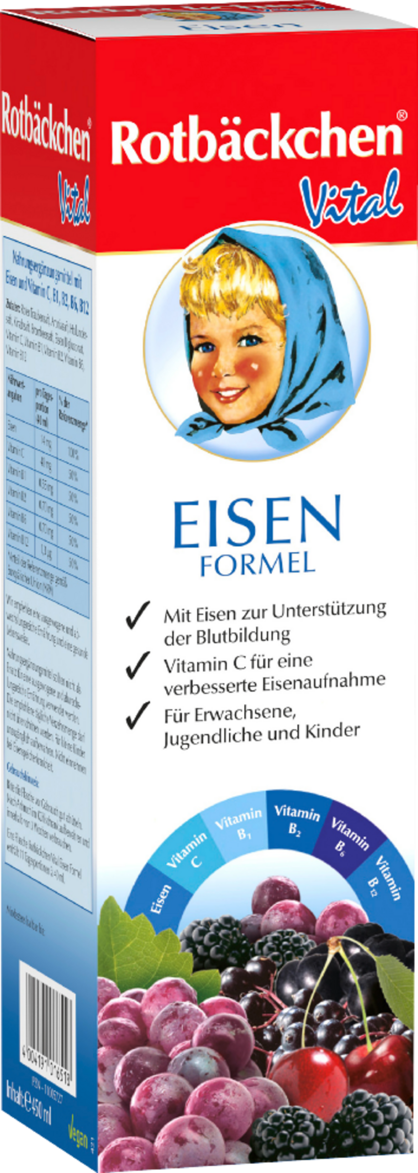 Eine Flasche Rotbäckchen Vital Eisen Formel enthält 11 Tagesportionen à 40ml.