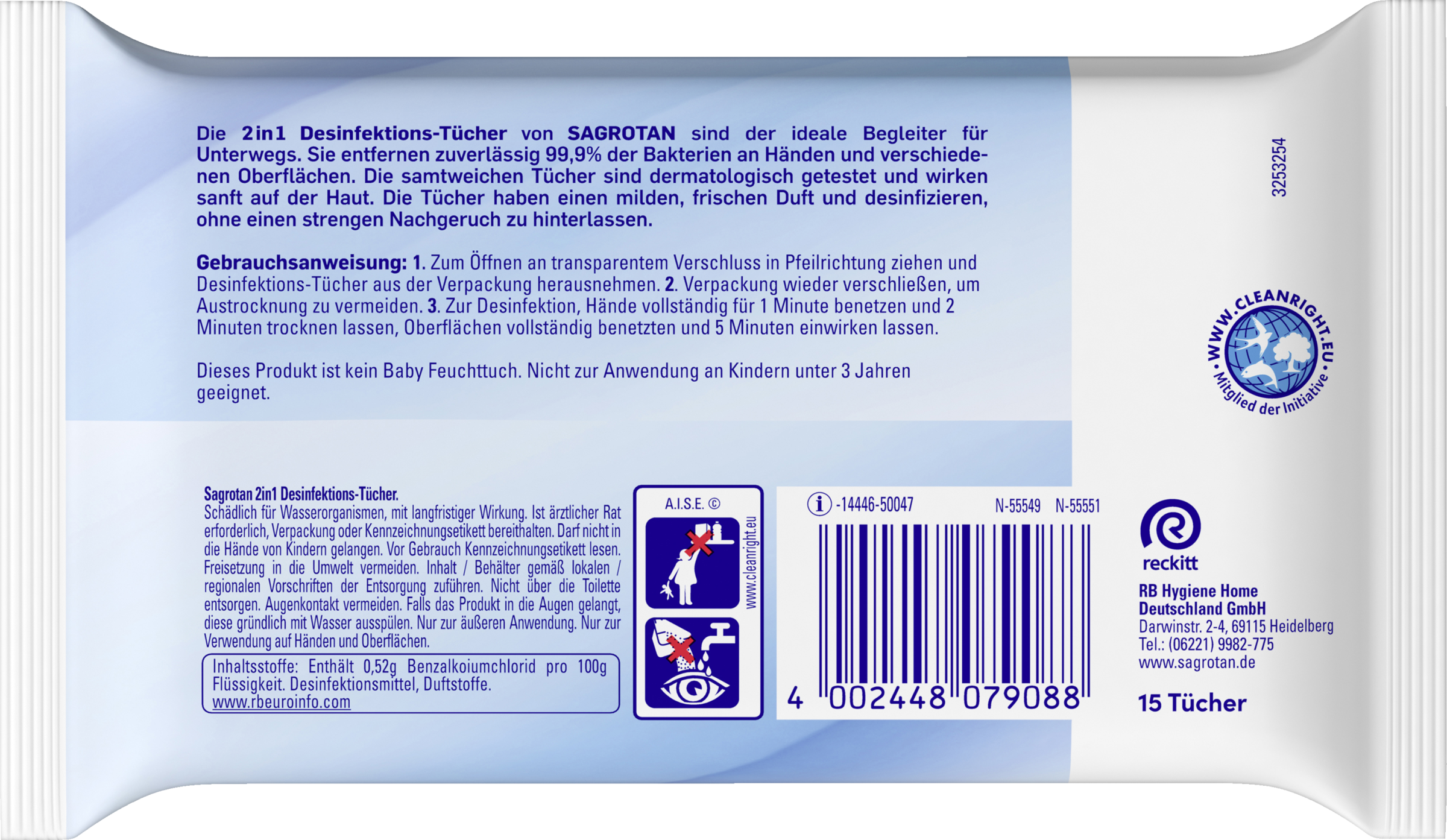 Tücher nicht in die Toilette werfen, sondern über den Hausmüll entsorgen. Packung nur völlig restentleert der Wertstoffsammlung zuführen.