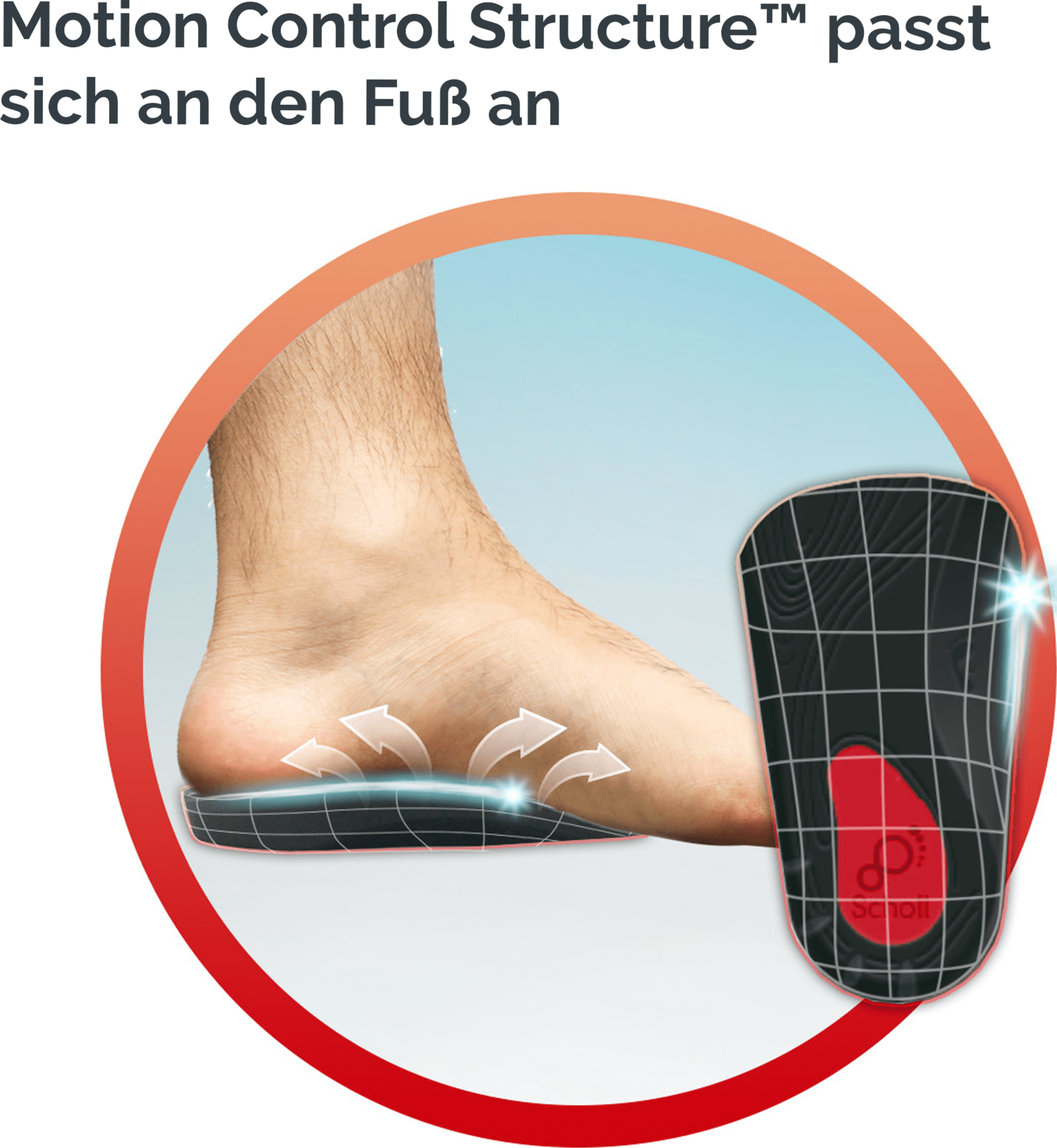 Dank der Motion Control Structure(R) haben die Einlagen die richtige Form und Materialkombination für eine zusätzliche Unterstützung der Füße.