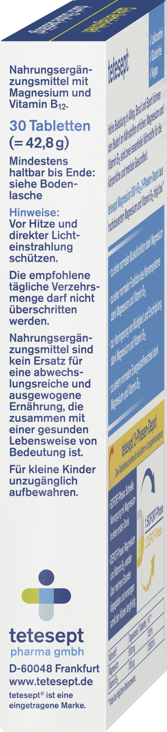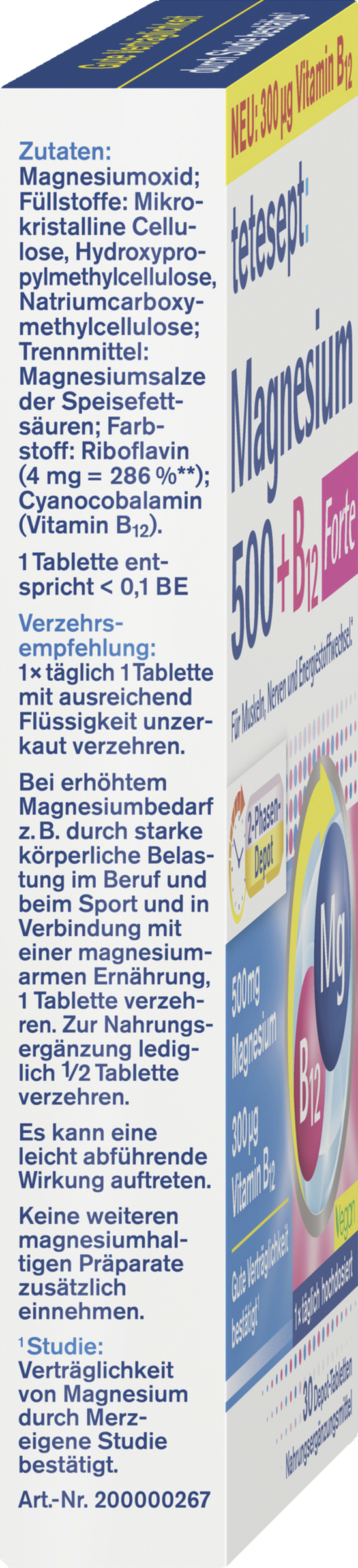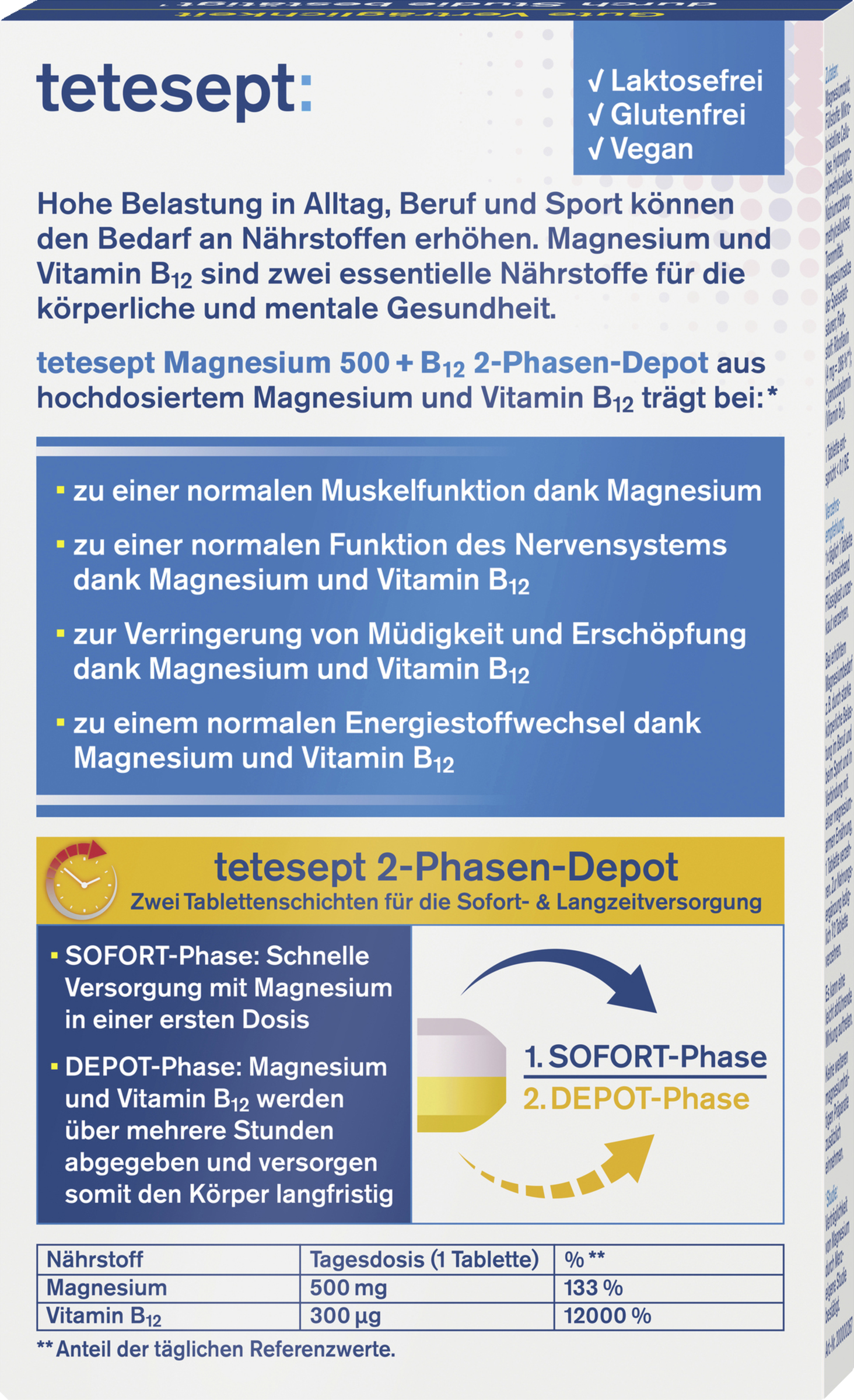 tetesept Magnesium 500+B12 2-Phasen-Depot aus hoch dosiertem Magnesium und Vitamin B12 trägt bei: