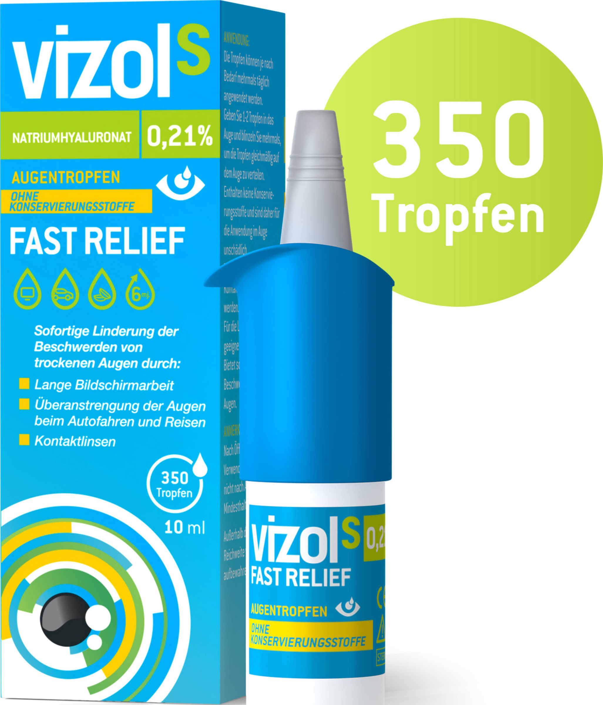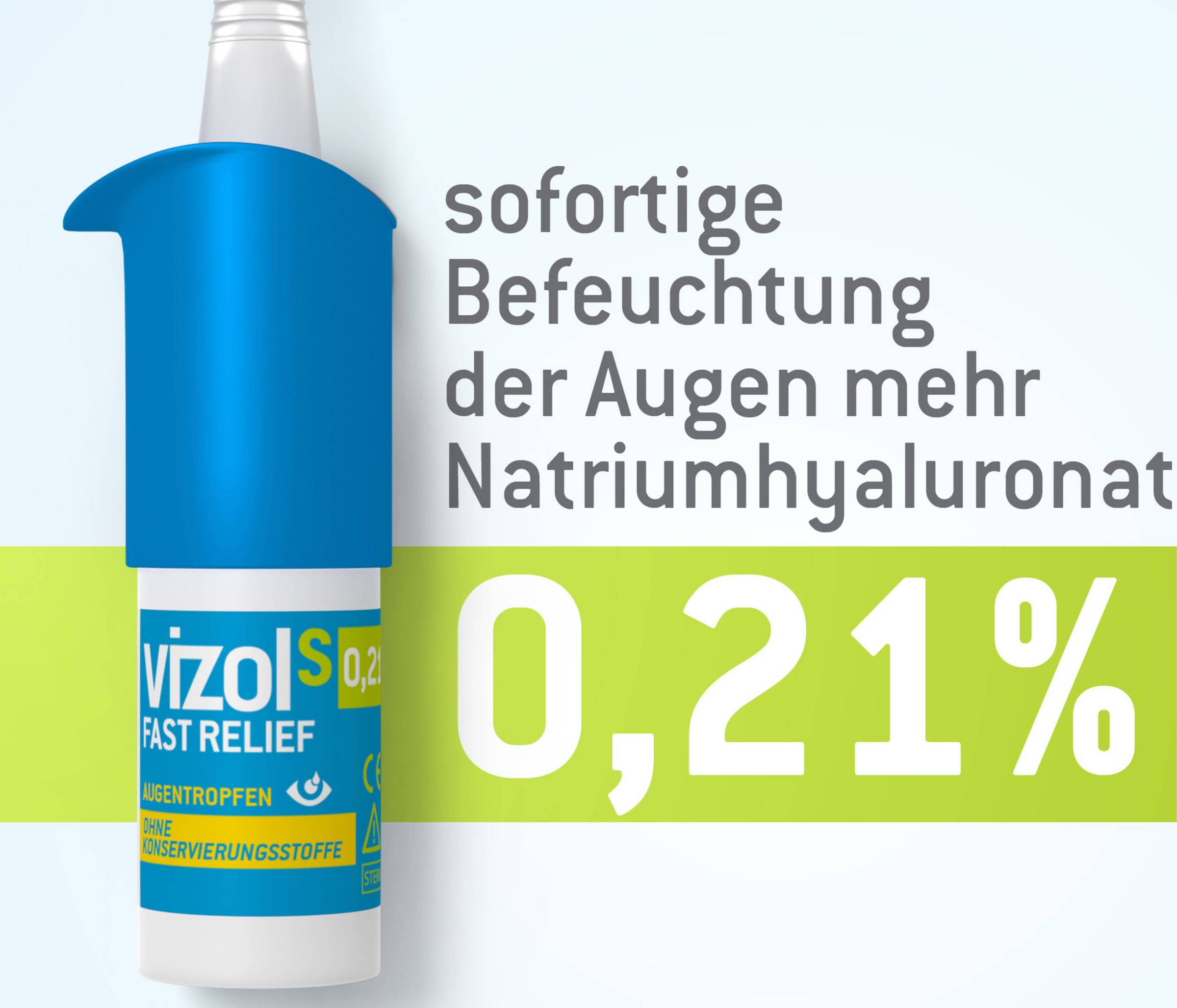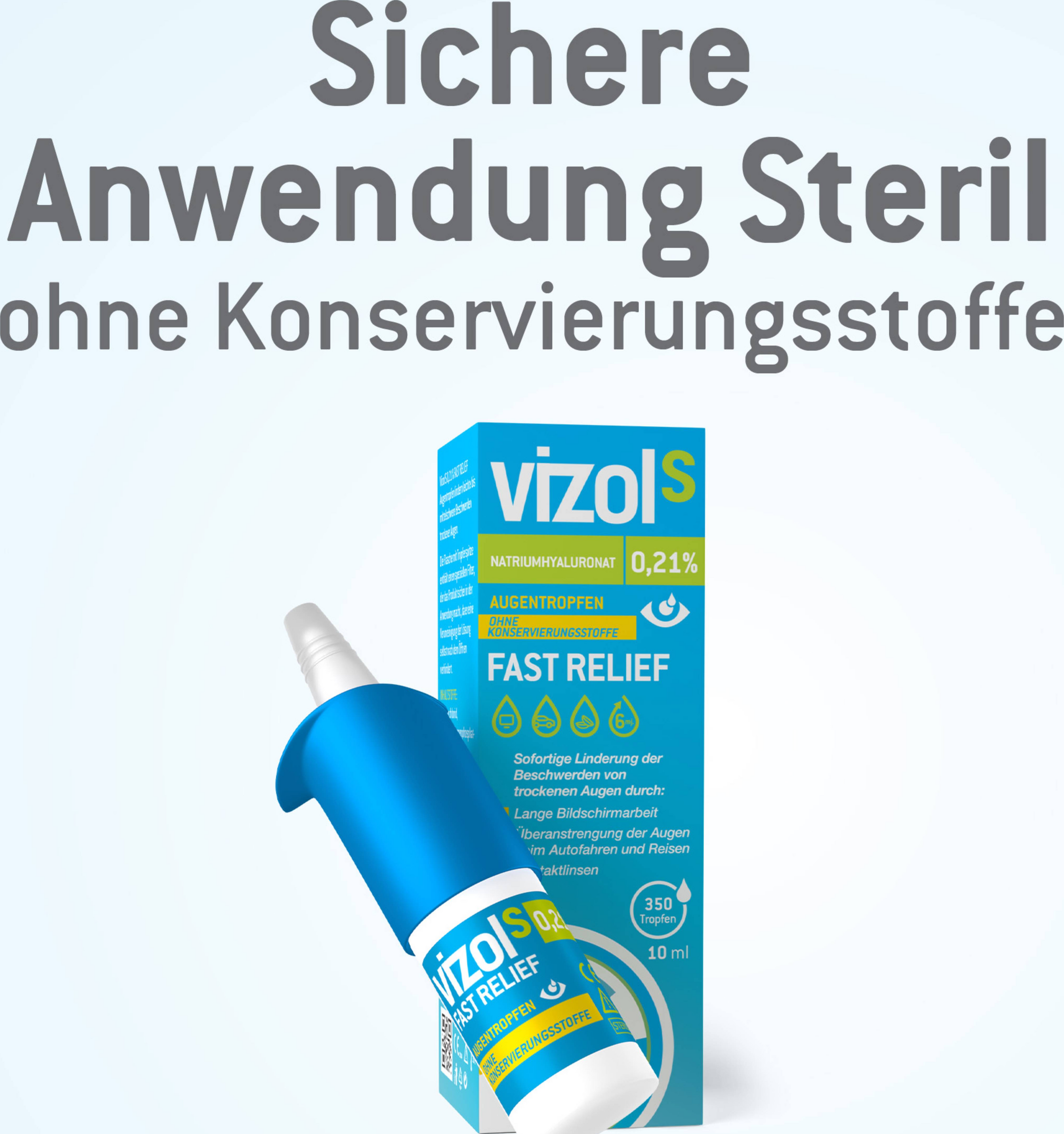 Vizol S 0,21 % FAST RELIEF Befeuchtende Augentropfen zur Linderung leichter bis mittelschwerer Beschwerden von trockenen Augen. Ohne Konservierungsstoffe.