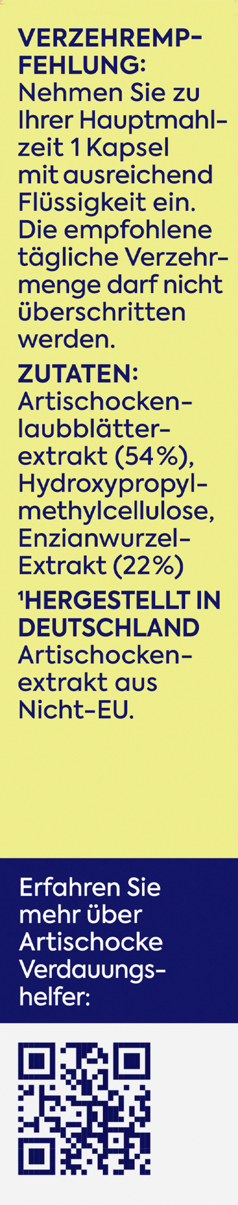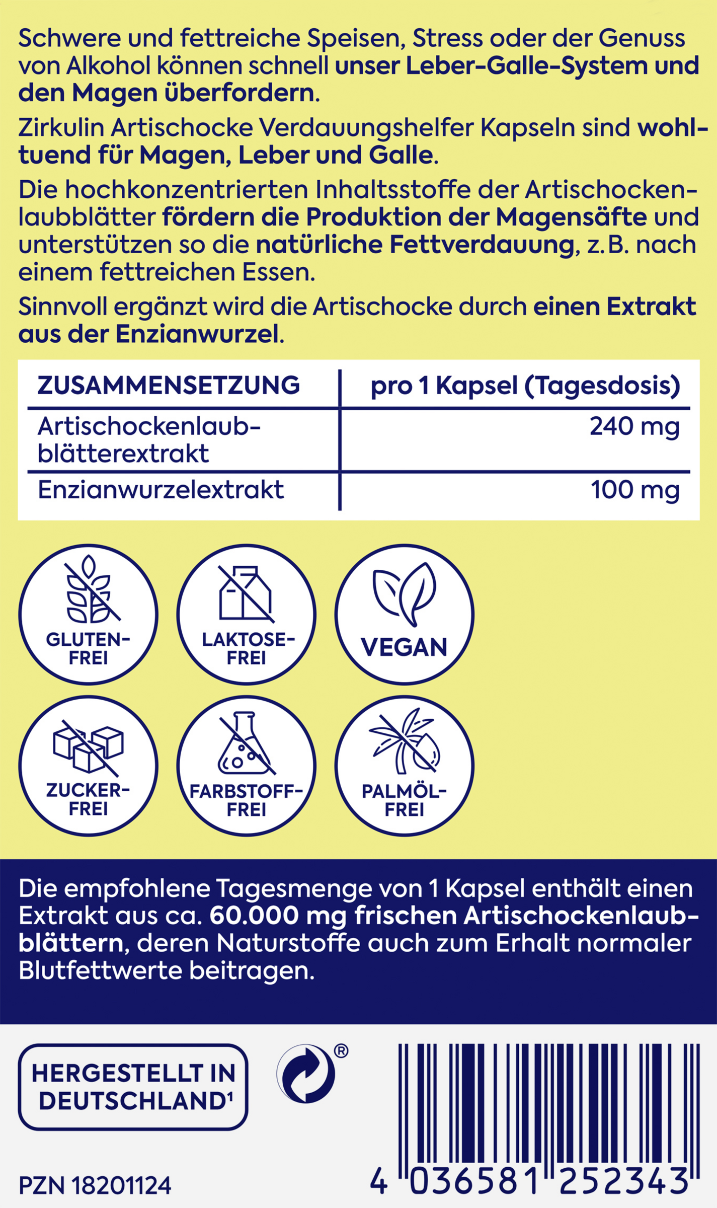 - entspricht 60.000 mg frischer Artischocke pro Kapsel.