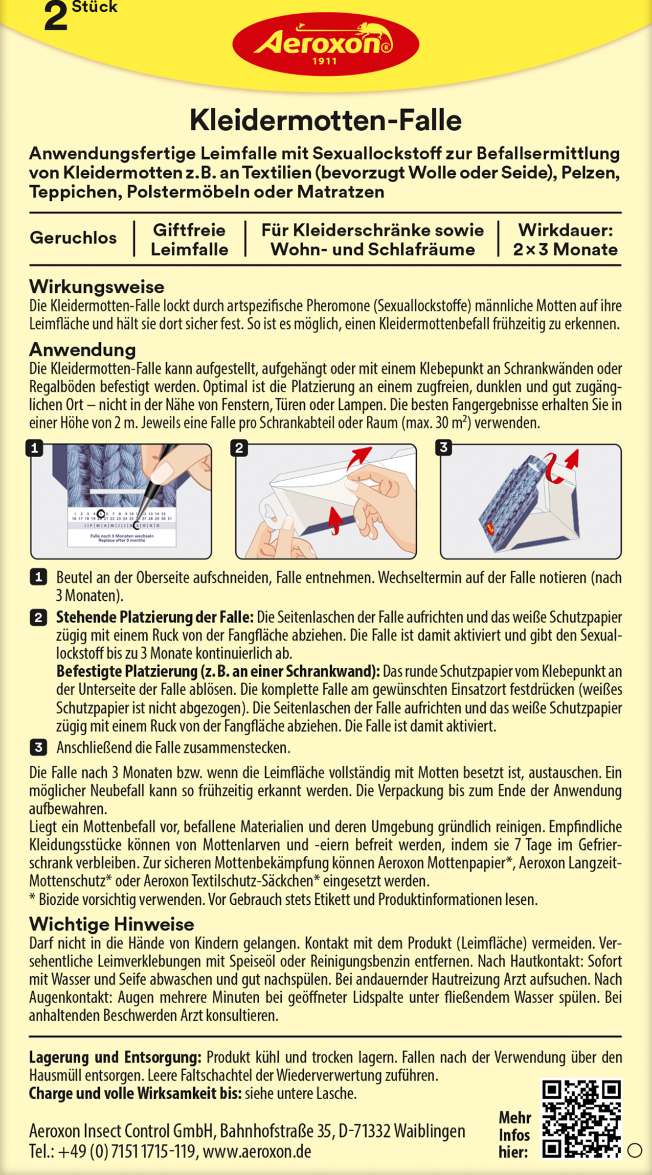 Produkt kühl und trocken lagern. Die Fallen können über den Hausmüll entsorgt werden. Die Faltschachtel der Wertstoffsammlung zuführen.