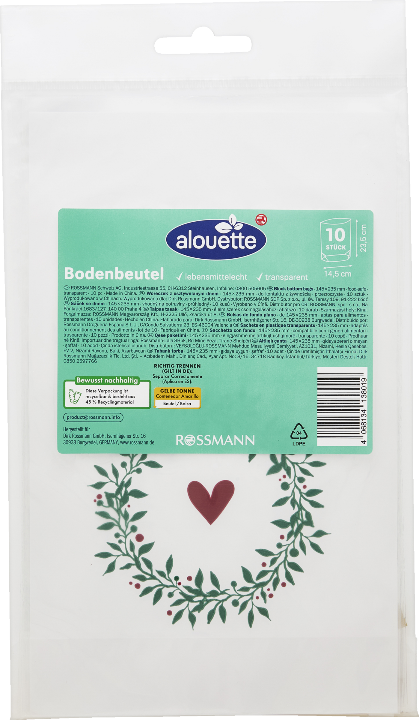 Entdecken Sie unsere vielseitigen alouette Bodenbeutel. Diese lebensmittelgeeigneten Beutel sind eine hervorragende Wahl, wenn Sie Pralinen, Kekse, Bonbons oder Konfekt stilvoll verpacken möchten. Gestalten Sie mit unseren Bodenbeuteln bezaubernde Geschenkverpackungen, die garantiert Freude bereiten. Eine hübsche Schleife bringt den letzten Schliff und verwandelt Ihr süßes Mitbringsel in ein kleines Meisterwerk. Auch bunte Tüten für den Kindergeburtstag lassen sich mit unseren Bodenbeuteln wunderbar zusammenstellen. Ob als partytaugliches Highlight oder als kleines Geschenk – mit unseren Bodenbeuteln sind Ihrer Kreativität keine Grenzen gesetzt und somit perfekt geeignet für jede Gelegenheit. •Motiv: Sterne/Flocken oder Herz mit Kranz•ca. 23,5 x 14,5 cm•lebensmittelecht•mit Klips