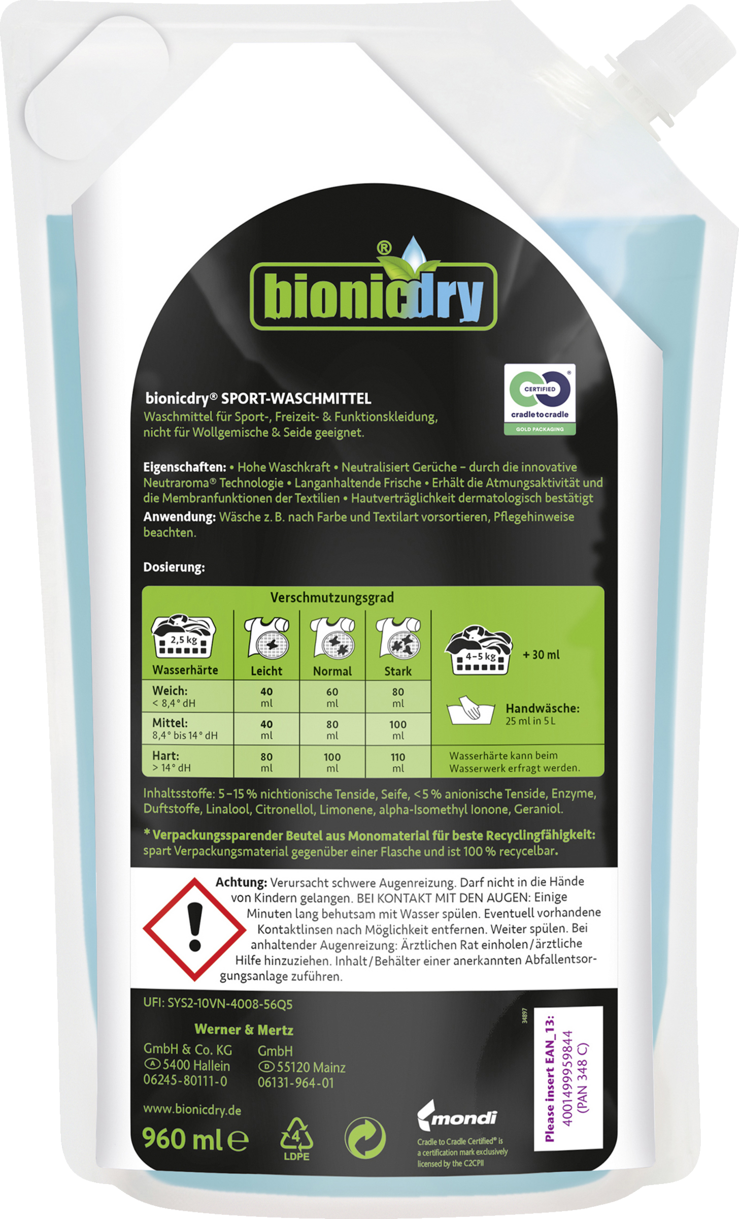 Das Bionicdry Sport-Waschmittel bietet eine hohe Waschkraft für empfindliche Sport-, Freizeit- & Funktionskleidung – selbst im Niedrigtemperaturbereich. Es erhält die Membranfunktionen und die Atmungsaktivität hochwertiger Funktionstextilien und ist ideal zur Vorbereitung einer Imprägnierung geeignet.