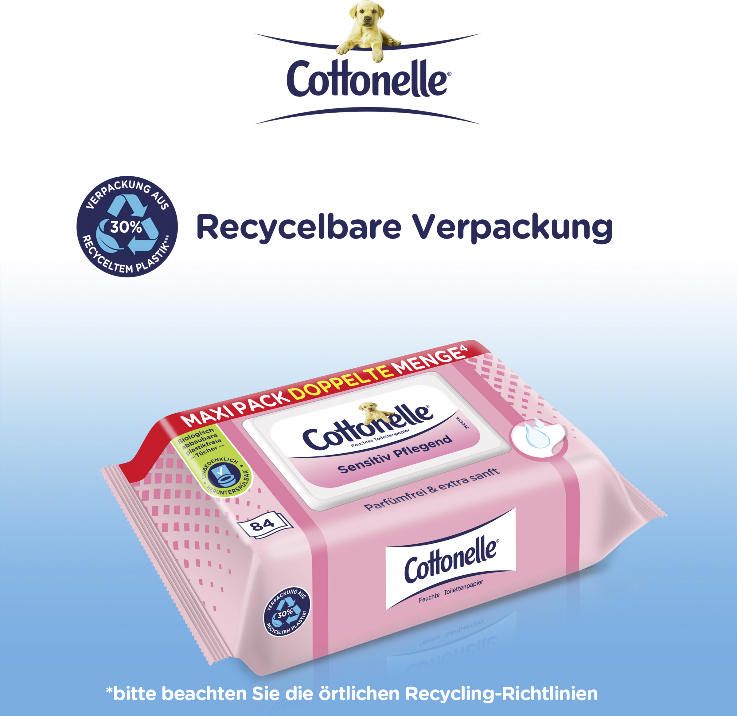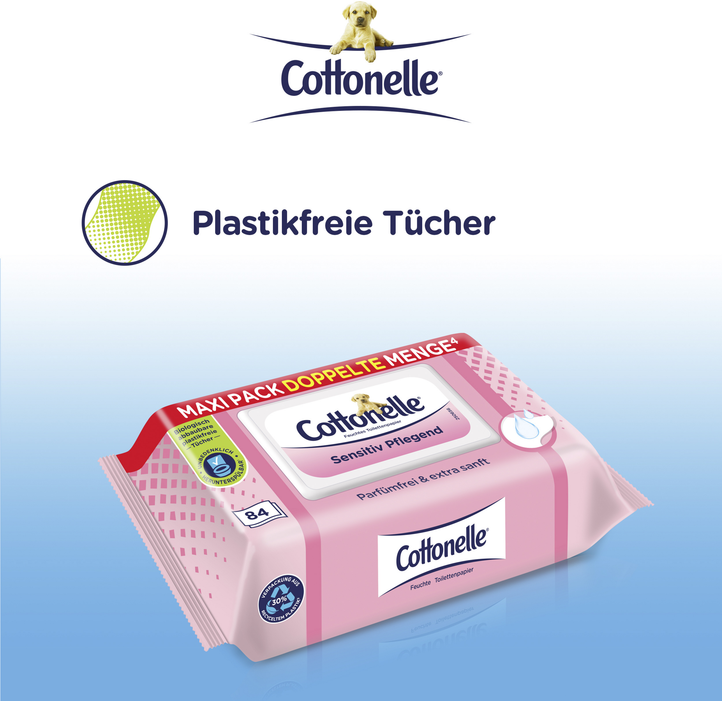 - das feuchte Toilettenpapier ist biologisch abbaubar und plastikfrei