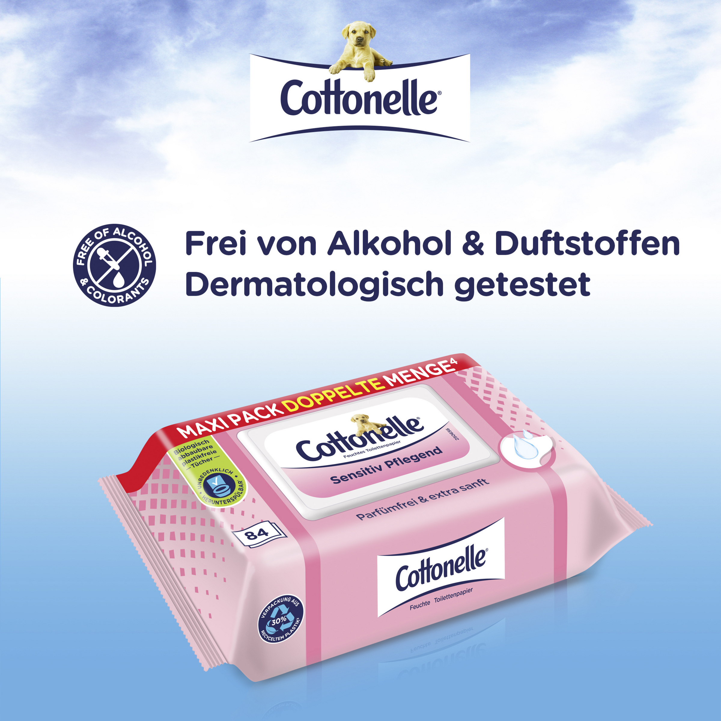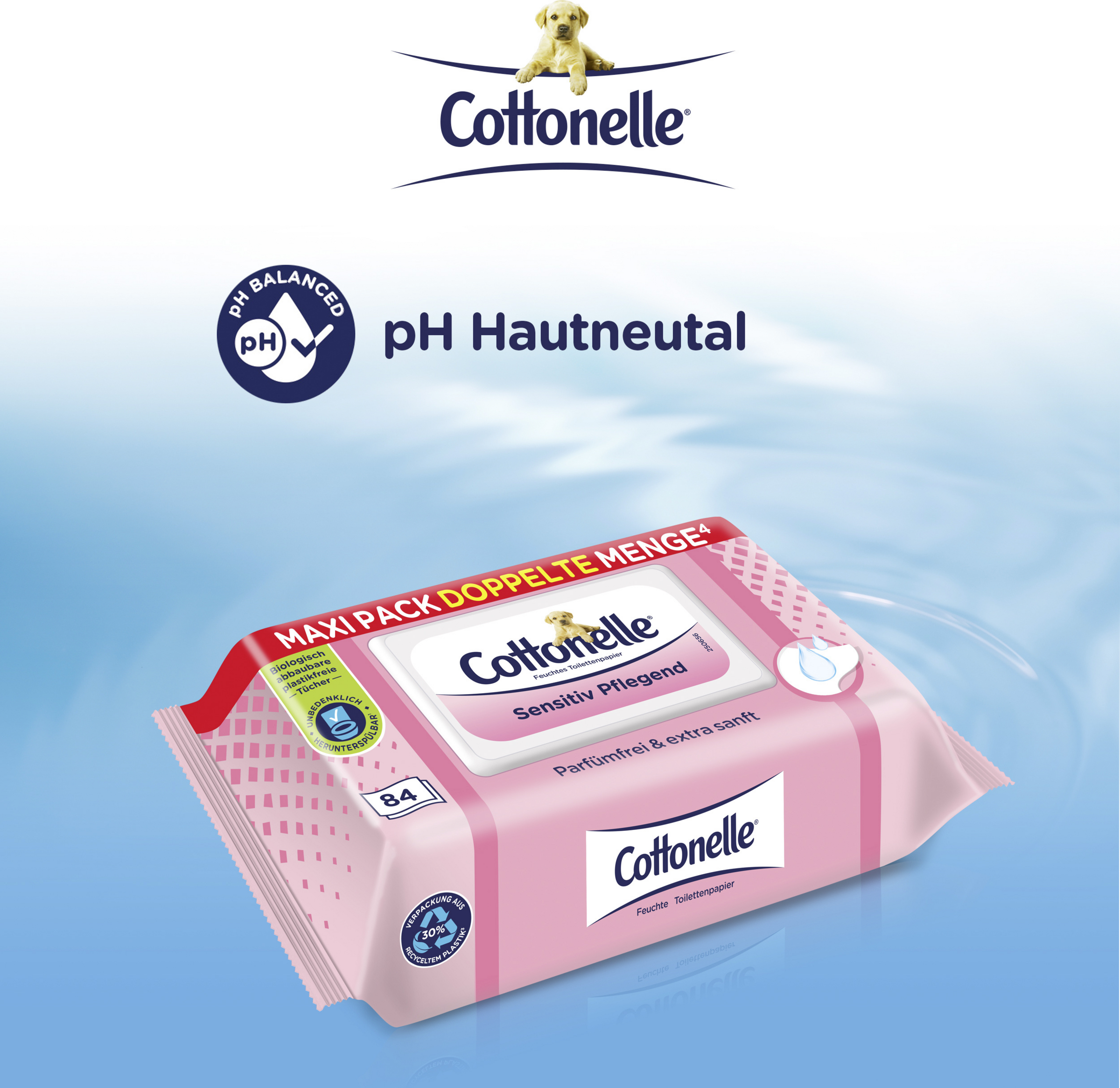 Die feuchten Toilettentücher von Cottonelle sind besonders sanft und pflegend und somit die optimale Ergänzung bei der persönlichen Körperpflege. Die parfümfreien Tücher eignen sich besonders für Personen mit empfindlicher Haut. Da die Tücher wasserlöslich sind, können 1-2 Tücher gleichzeitig problemlos in der Toilette heruntergespült werden. Außerdem schützt die luftdichte Verpackung mit wiederverschließbarem Feuchtigkeitssiegel die Tücher vor dem Austrocknen.