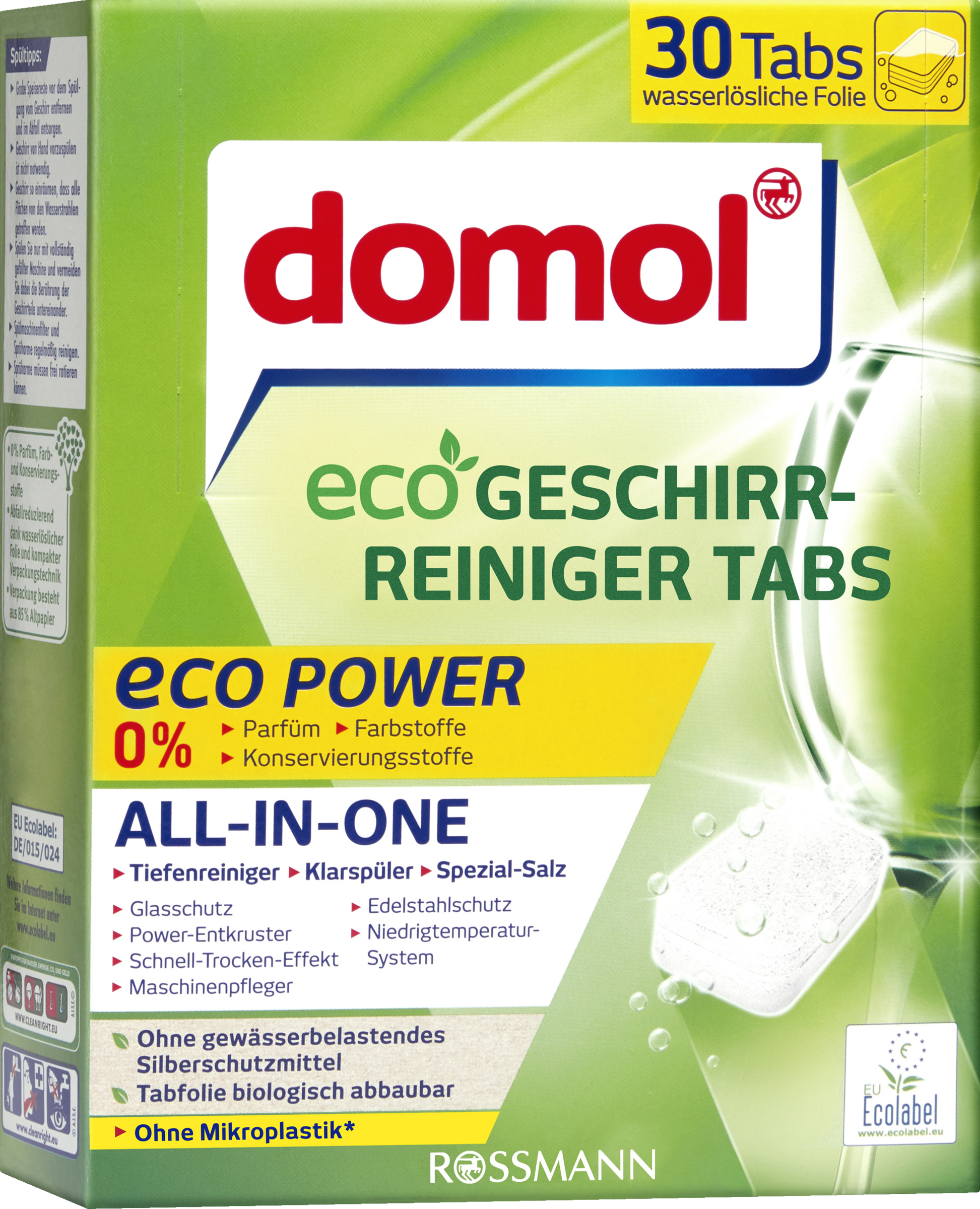 domol Geschirr-Reiniger Eco All-in-One erzielen auch ein sauberes und glänzendes Spülergebnis, selbst wenn die Kontrollleuchten für Klarspüler und/oder Salz aufleuchten (sofern vorhanden) oder sich noch Klarspüler und/oder Salz in der Spülmaschine befinden. In beiden Fällen bleibt die Funktionsfähigkeit Ihrer Spülmaschine vollständig erhalten.