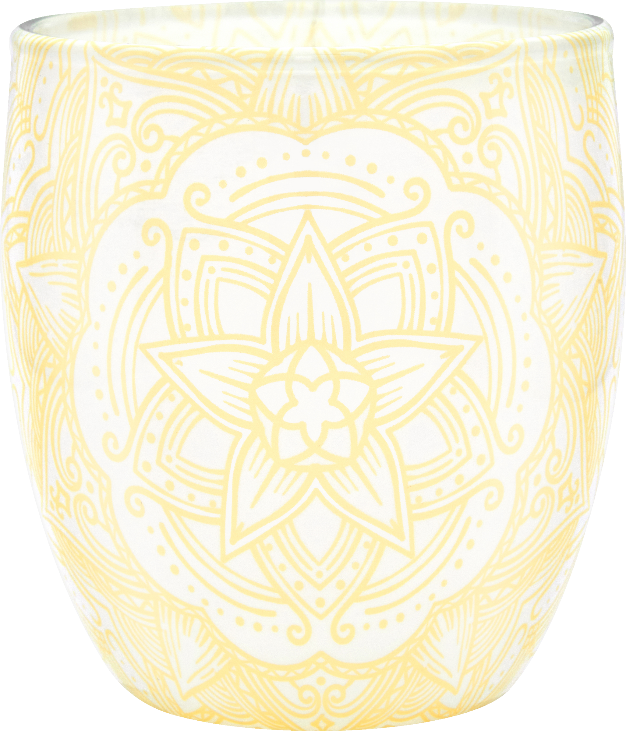 - klassische Duftkerze im Glas mit dekorativem Sleevedesign