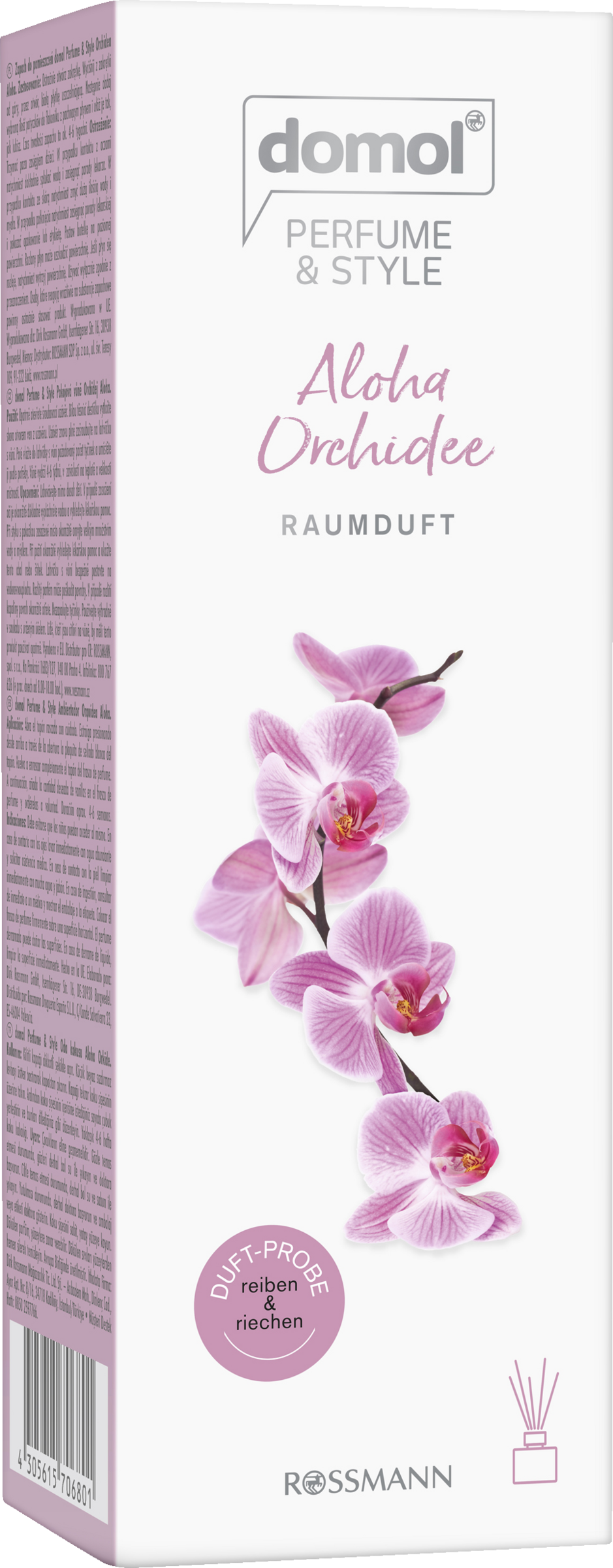 Freuen Sie sich auf magische Duftmomente in Ihrem Zuhause - mit dem domol Perfume & Style Raumduft Aloha Orchidee. Das Geheimnis der Düfte liegt in den Emotionen, die sie in uns wecken. Genießen Sie eine frische, hawaiianische Atmosphäre mit dem Duft von tropischen Orchideen und exotischen Früchten. Die stilvolle Kombination aus Duftflakon, Rattanstäbchen und hochwertigen Aromen kann im gesamten Wohnraum eingesetzt werden und verleiht Ihren Räumen wochenlang eine frische Note.