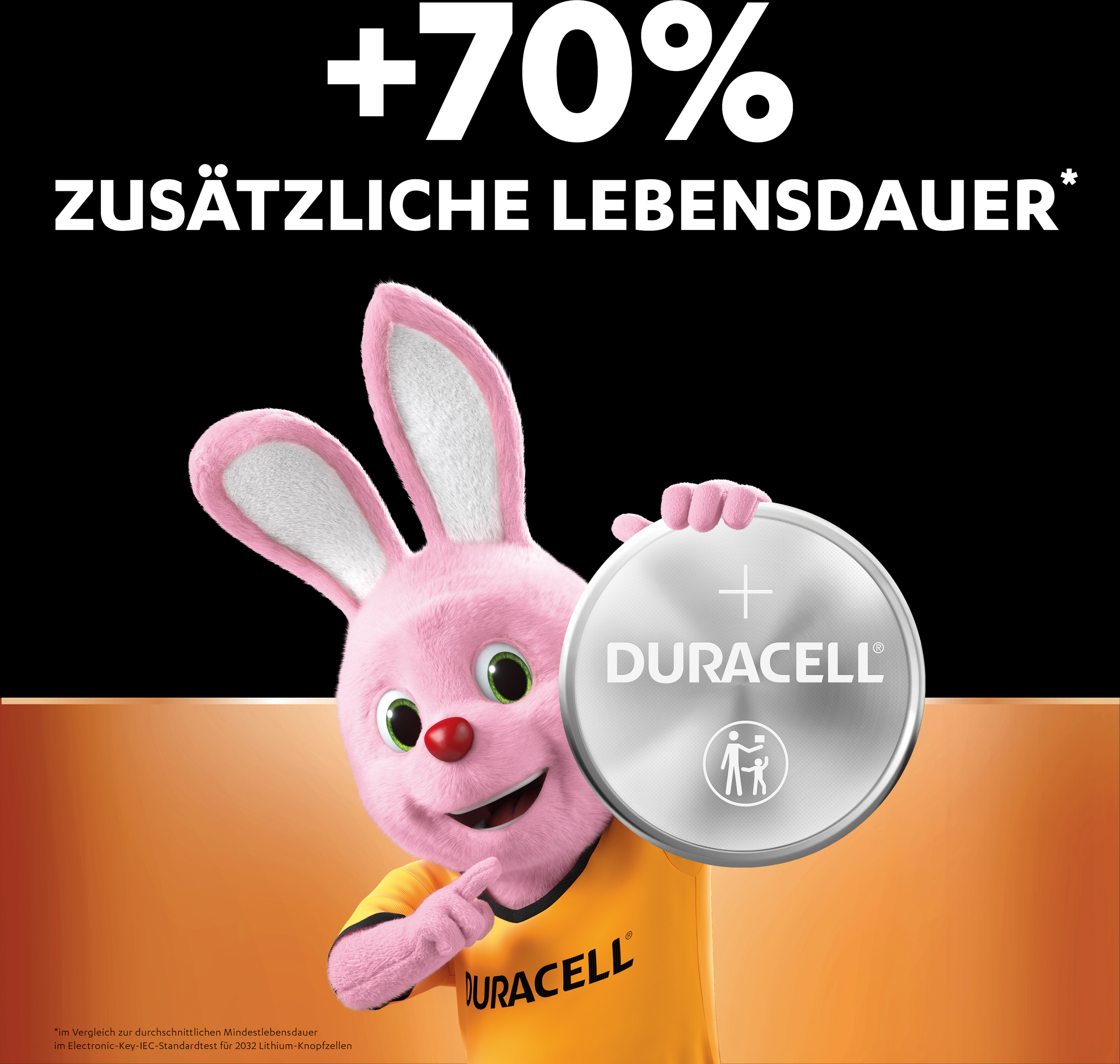 * im Vergleich zur durchschnittlichen Mindestlebensdauer im Electronic-Key-IEC-Standardtest für CR2032 Batterien. Die Ergebnisse können je nach Gerät und Nutzungsmuster variieren.