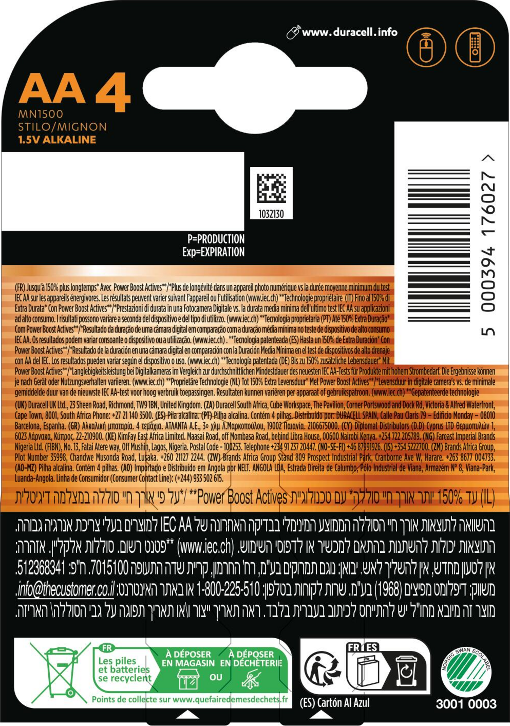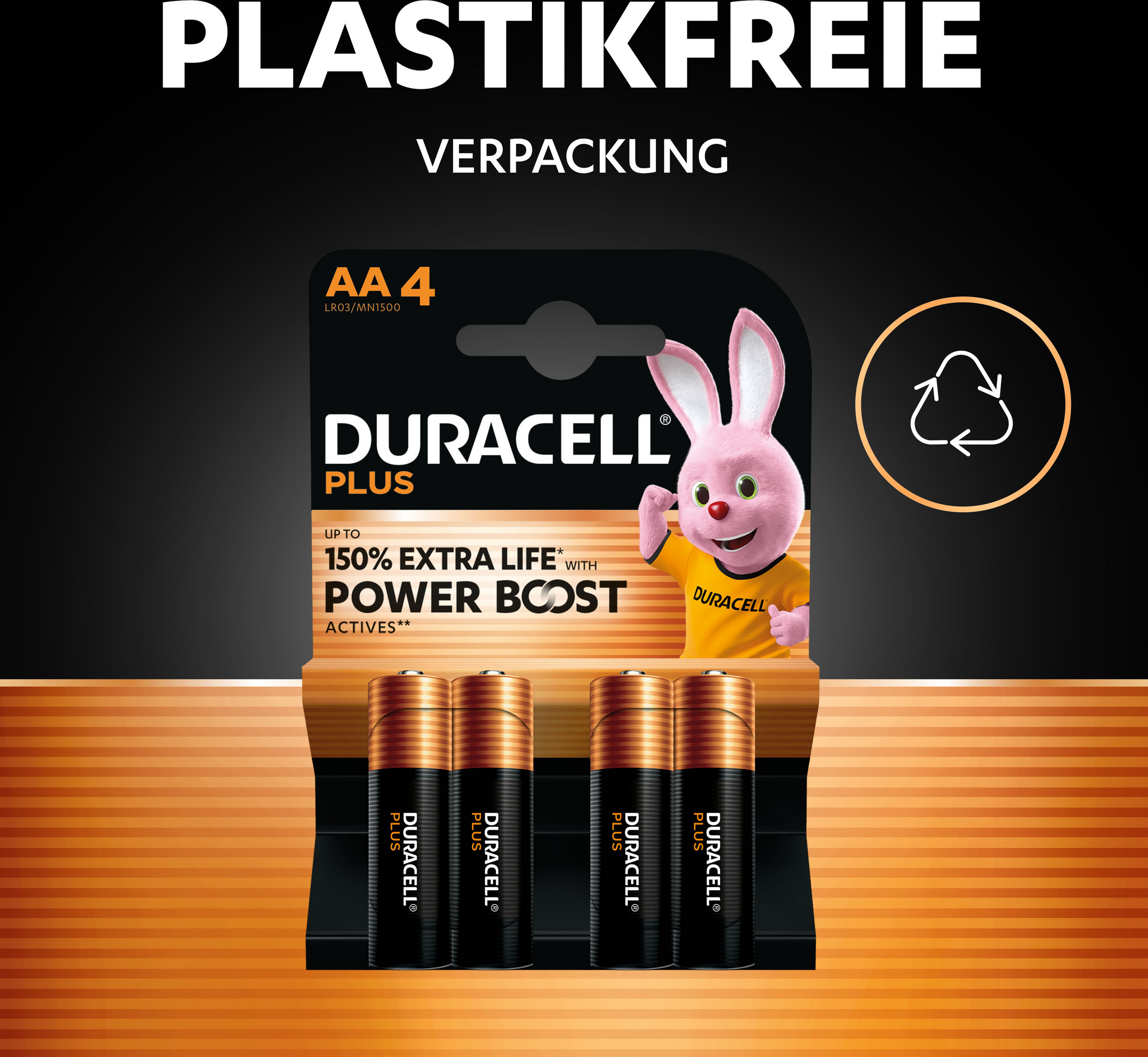 Duracell Plus AA Alkaline Batterien sind ideal für die Stromversorgung Ihrer Alltagsgeräte und bieten mit den patentierten POWER BOOST Actives** von Duracell, einer einzigartigen Mischung aus Lithium und Nickel, die für eine lang anhaltende Leistung Ihrer Geräte sorgt, bis zu 150 % mehr Lebensdauer*. Die einzigartige Nylon-Abdeckung verhindert ein Auslaufen, während die Verpackung aus 0 % Plastik recycelbar ist. Dank der Lagerungsgarantie von 10 Jahren*** können Sie sich darauf verlassen, dass Duracell Plus Power liefert, wann immer Sie sie benötigen.