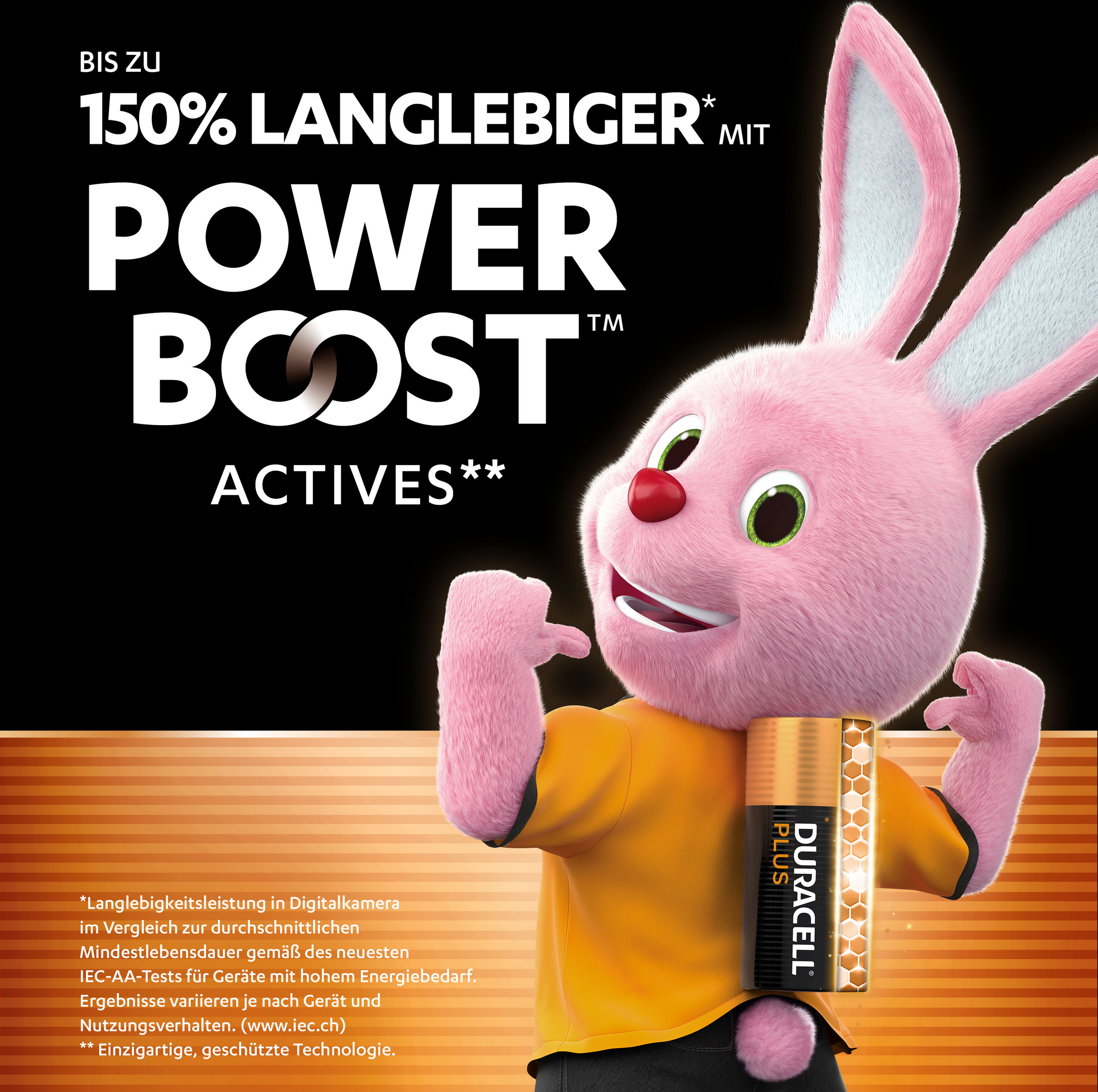 * Langlebigkeitsleistung in Digitalkamera im Vergleich zur durchschnittlichen Mindestlebensdauer gemäß des neuesten IEC-AA-Tests für Geräte mit hohem Energiebedarf. Ergebnisse variieren je nach Gerät und Nutzungsverhalten. (www.iec.ch)