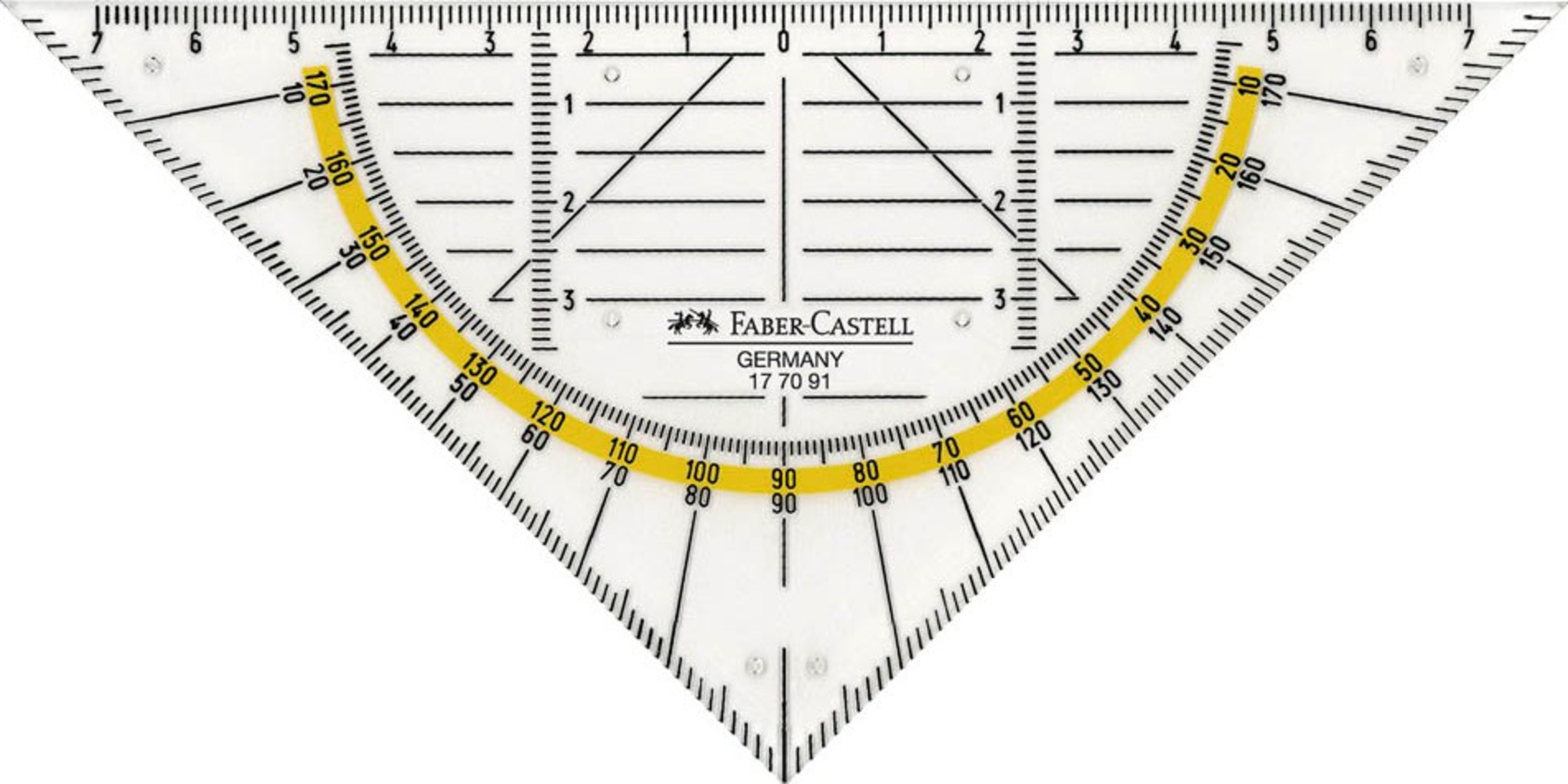 Das FABER-CASTELL Geodreieck verfügt über zahlreiche nützliche Eigenschaften. Sie werden bei der Nutzung nichts vermissen und restlos begeistert sein! Die gegenläufige Grad-Skala ist für ein besseres Ablesen farbig markiert.
