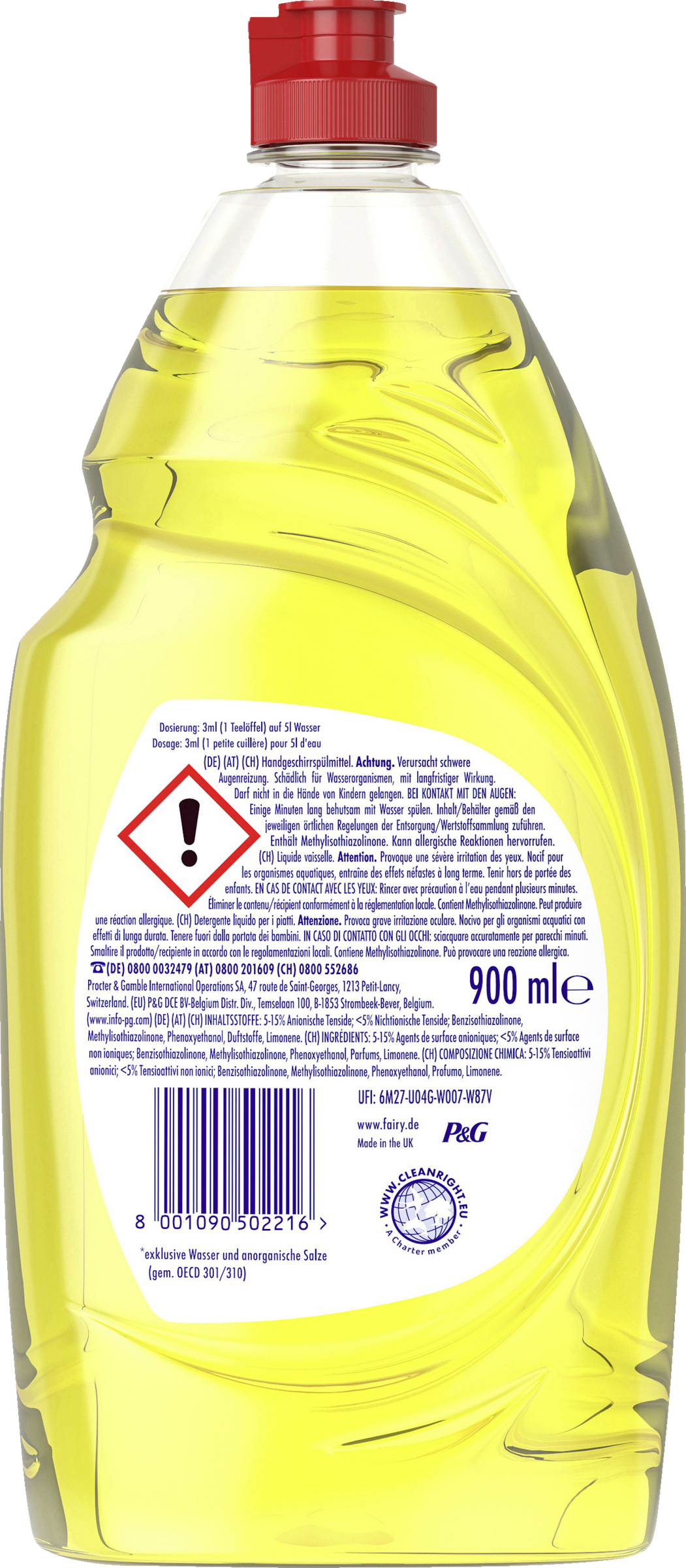 Fairy bietet die Reinigungskraft, auf die Sie sich beim Abwasch verlassen können. Die Ultra Konzentrat konzentrierte Formel löst Fett sofort, für strahlend sauberes Geschirr. Ein Tropfen Fairy Spülmittel ist so ergiebig, dass er 50% mehr fettiges Geschirr reinigt als nicht-konzentrierte Einzelhandelsmarken (im Vergleich zu nicht-konzentrierten Handelsmarken in 1-Liter-Flaschen mit empfohlener Dosierung von 4 ml/5 l oder mehr). Das bedeutet, dass Sie weniger Plastikflaschen verwenden und somit auch die Umwelt schonen.