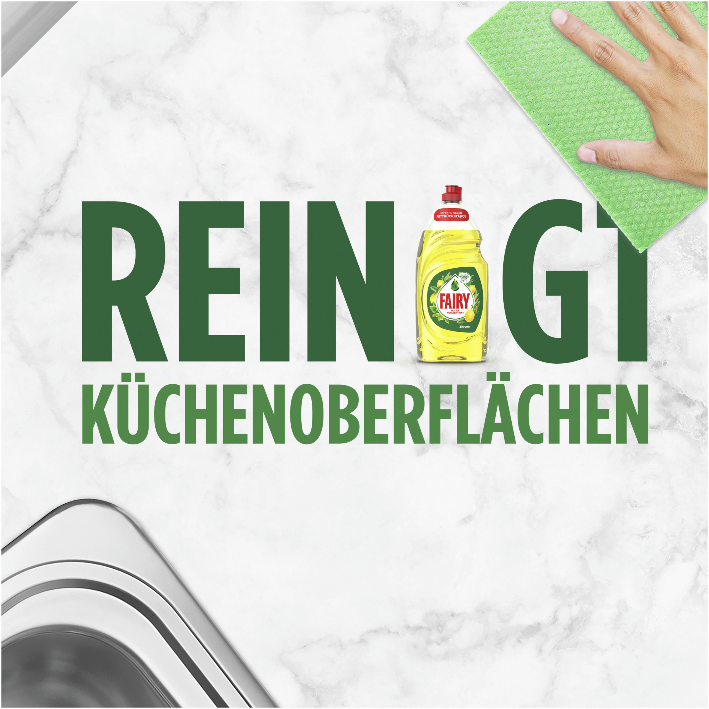 Fairy bietet die Reinigungskraft, auf die Sie sich beim Abwasch verlassen können.