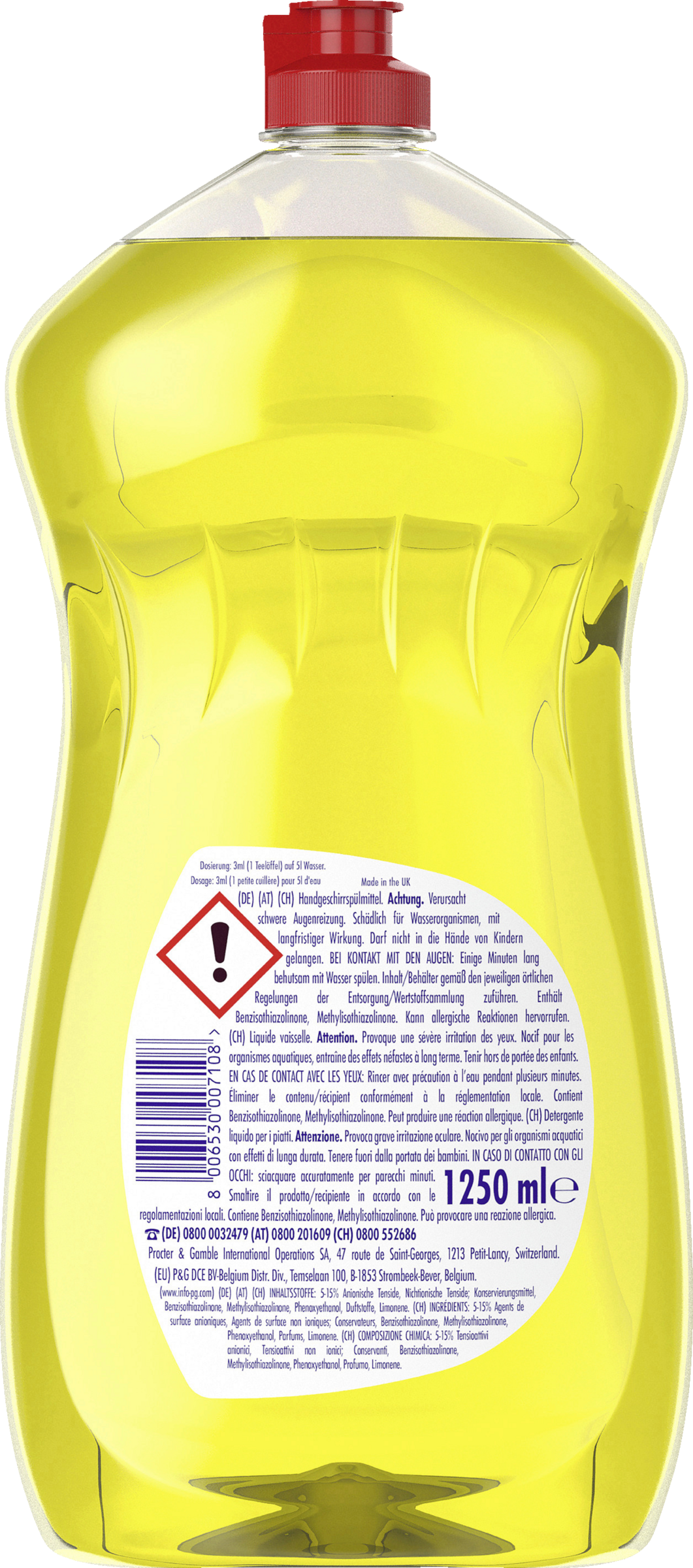 5-15% Anionische Tenside, Nichtionische Tenside, Konservierungsmittel, Benzisothiazolinone, Methylisothiazolinone, Phenoxyethanol, Duftstoffe, Limonene