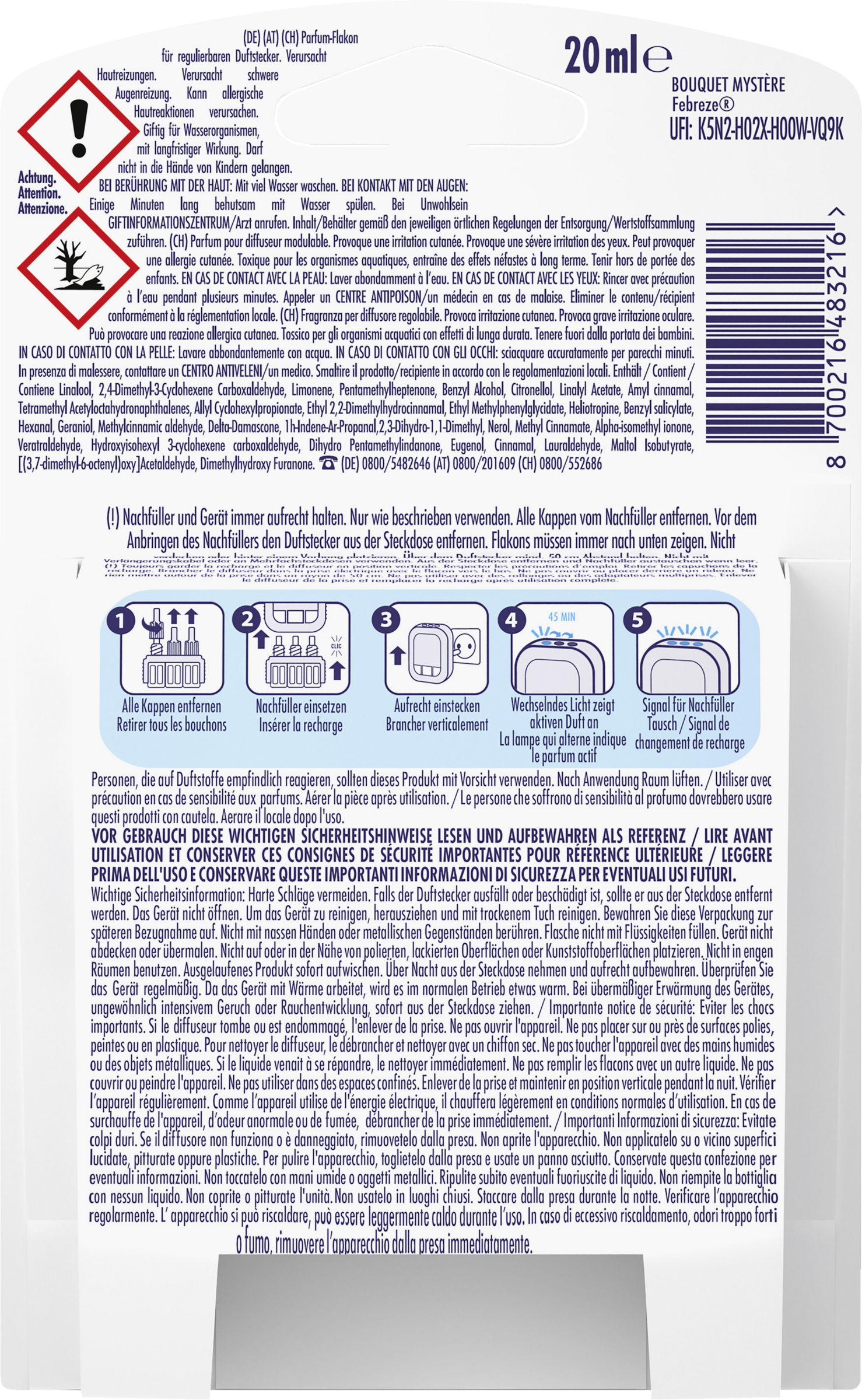 Der Febreze 3Volution Amethyst Blütentraum Duftstecker befreit die Luft kontinuierlich von Gerüchen und wechselt zwischen 3 sich ergänzenden Düften für lang anhaltende Frische bis zu 90 Tage.* Erleben Sie die angenehme Intensität von Amethyst Blütentraum, die sich im Raum verteilt und ihn mit Duft erfüllt. „Amethyst Blütentraum" schafft ein warmes, einladendes Ambiente in Ihrem Zuhause. Lassen Sie sich von einem Gefühl der Ruhe vereinnahmen, mit diesem sanften Duft, der den Raum erfüllt. Bei anderen Duftsteckern gewöhnt sich die Nase schnell an den stets gleichen Duft und wird „geruchsblind", so dass der Duft nach einiger Zeit gar nicht mehr wahrgenommen wird. Der Febreze 3Volution Duftstecker löst dieses Problem, da er alle 45 Minuten automatisch zwischen 3 sich ergänzenden, hochwertigen Düften wechselt und damit ein kontinuierliches Frischeerlebnis schafft. Verwenden Sie den Febreze 3Volution Nachfüllflakon mit dem Febreze 3Volution Duftstecker, um Ihrem Zuhause einen frischen Duft zu verleihen, den Sie Tag für Tag und Woche für Woche wahrnehmen. Mit dem regulierbaren Duftstecker können Sie die Duftintensität so einstellen, wie es Ihnen angenehm erscheint. Damit schaffen Sie ein frisches Ambiente, das Sie 90 Tage* lang genießen können. Erleben Sie die Frische und probieren Sie auch die anderen Febreze Produkte mit der einzigartigen Technologie zur Geruchsbekämpfung aus, z. B. Febreze Textilerfrischer sowie Luft- und Auto Lufterfrischer.