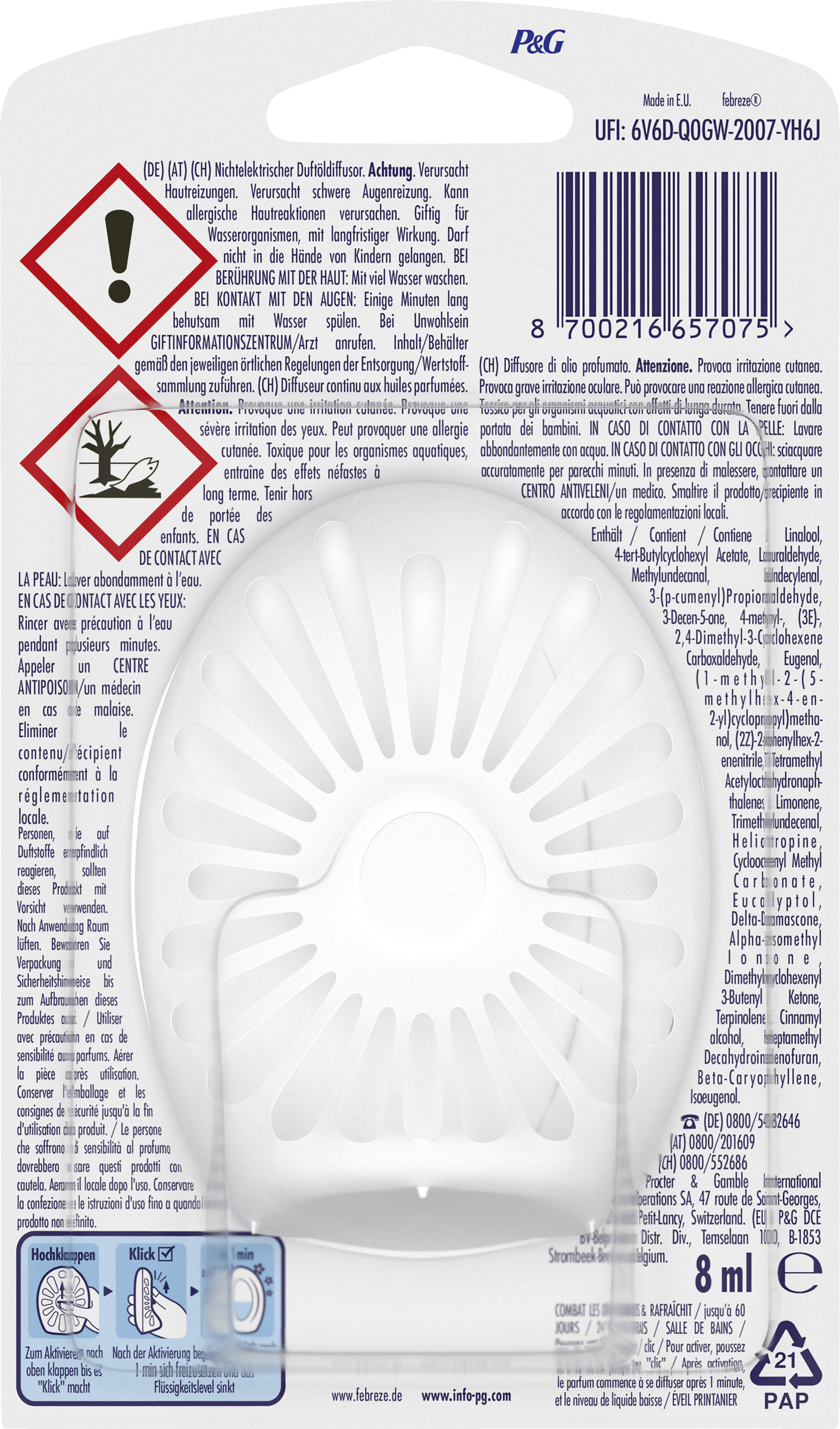 - Febreze einmalige frische Luft Technologie hilft, das Festsetzen von Gerüchen zu verhindern