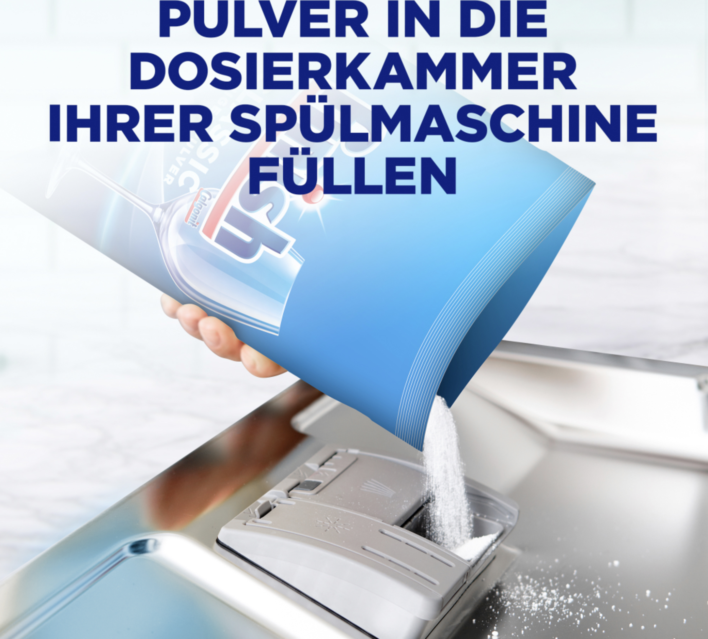 Kratzen Sie Essensreste ab. Füllen Sie die Dosierkammer gemäß der Bedienungsanleitung Ihrer Spülmaschine bis zur Markierung mit Finish Reiniger-Pulver. Benutzen Sie mehr Finish Reiniger-Pulver bei starken Verschmutzungen und weniger bei kleineren Ladungen. Nicht empfohlen für die Verwendung mit echtem Silberbesteck. Achtung! Bitte füllen Sie das Finish Reiniger-Pulver in die Dosierkammer – NICHT in das Vorratsgefäß für Salz!