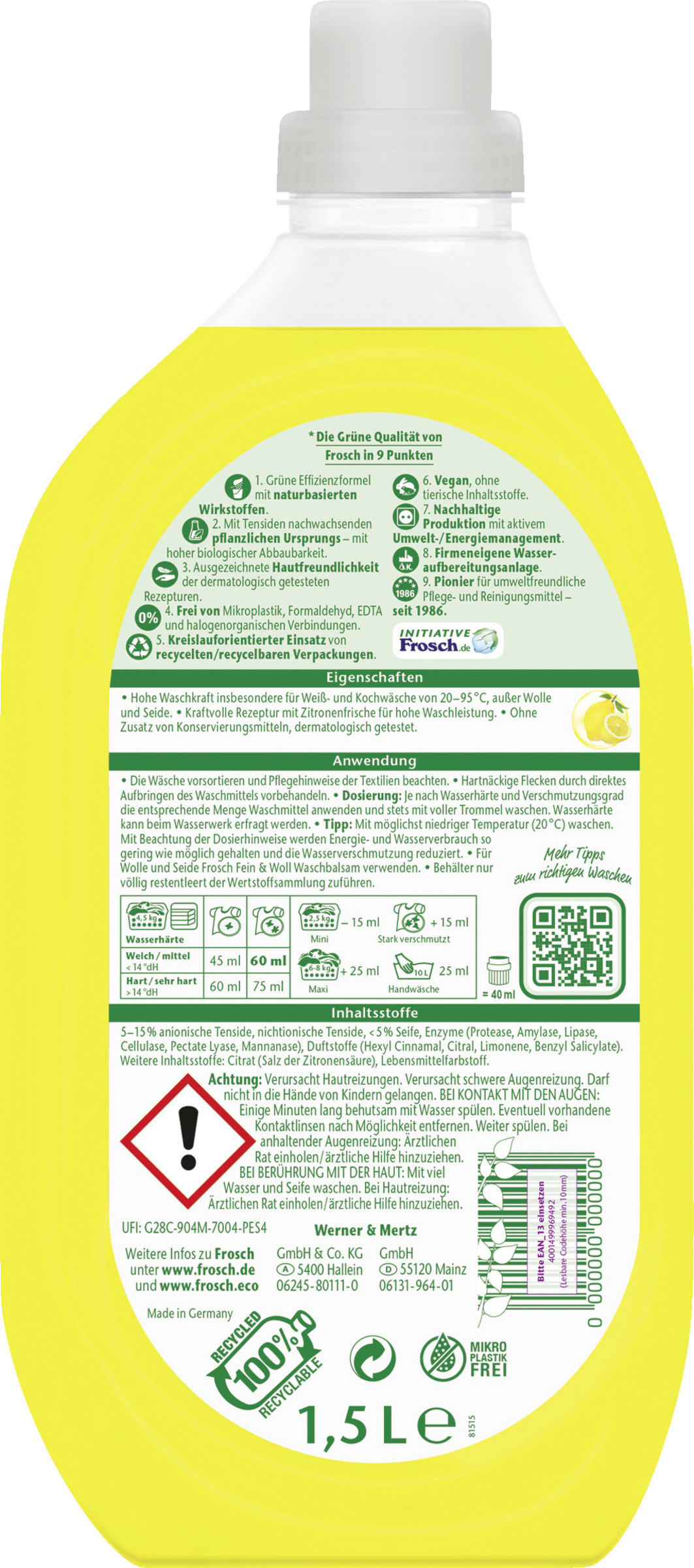 Das Frosch Citrus Voll-Waschmittel gewährleistet eine hohe Waschkraft für Weiß- & Kochwäsche.