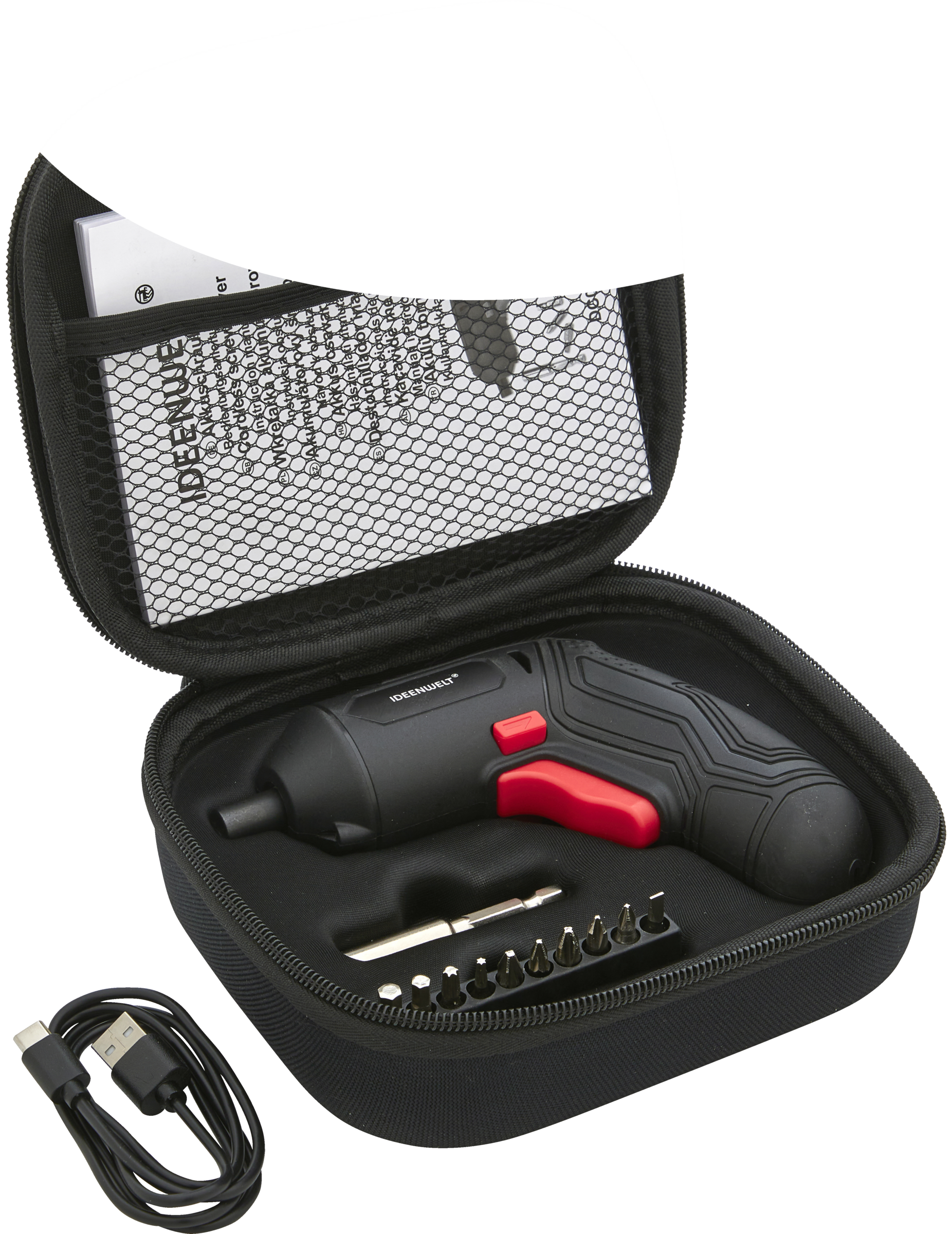 - inkl. 10 Standard-Bits, 1 Bit-Verlängerung und USB-C-Kabel