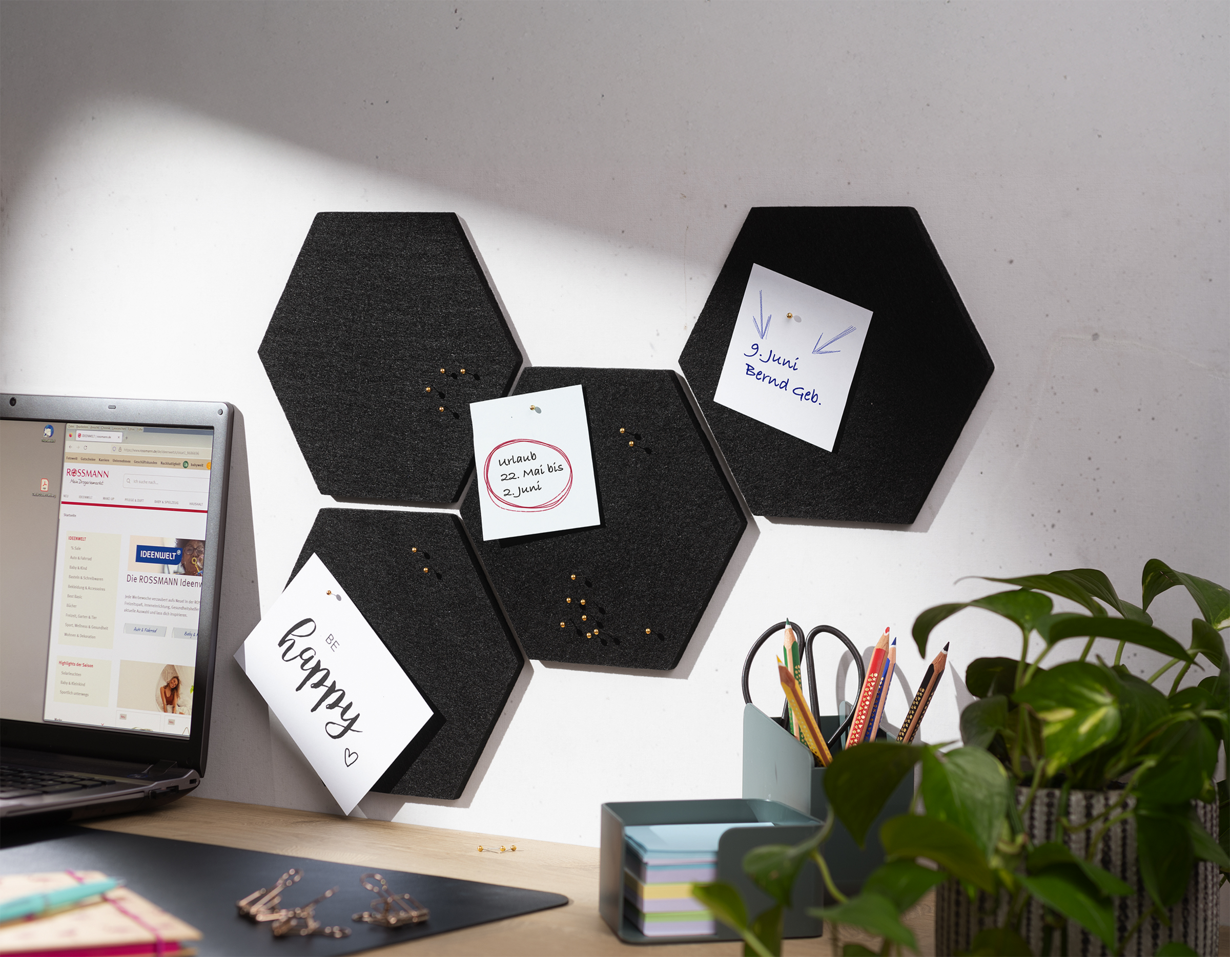 - 4 Fliesen aus Polyester-Filz (sechseckig) und 20 Pinnadeln