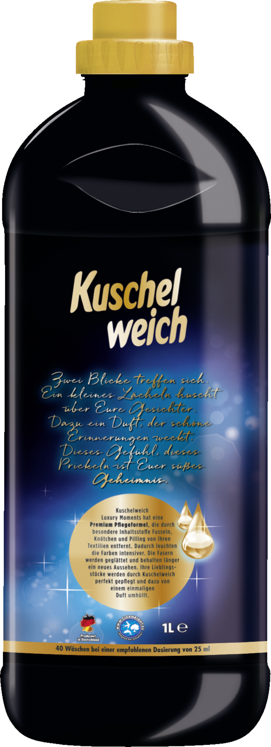 Kuschelweich Luxury Moments hat eine Premium Pflegeformel, die durch besondere Inhaltsstoffe Fusseln, Knötchen und Pilling von Ihren Textilien entfernt. Dadurch leuchten die Farben intensiver. Die Fasern werden geglättet und behalten länger ein neues Aussehen. Ihre Lieblingsstücke werden durch Kuschelweich perfekt gepflegt und dazu von einem einmaligen Duft umhüllt.