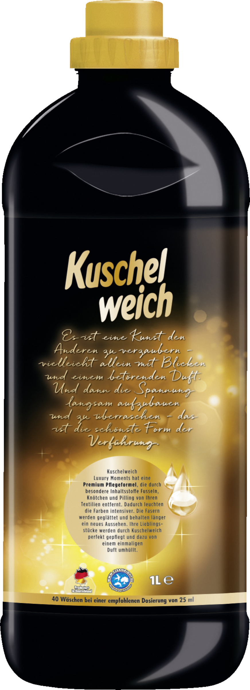 Kuschelweich Luxury Moments hat eine Premium Pflegeformel, die durch besondere Inhaltsstoffe Fusseln, Knötchen und Pilling von Ihren Textilien entfernt. Dadurch leuchten die Farben intensiver. Die Fasern werden geglättet und behalten länger ein neues Aussehen. Ihre Lieblingsstücke werden durch Kuschelweich perfekt gepflegt und dazu von einem einmaligen Duft umhüllt.
