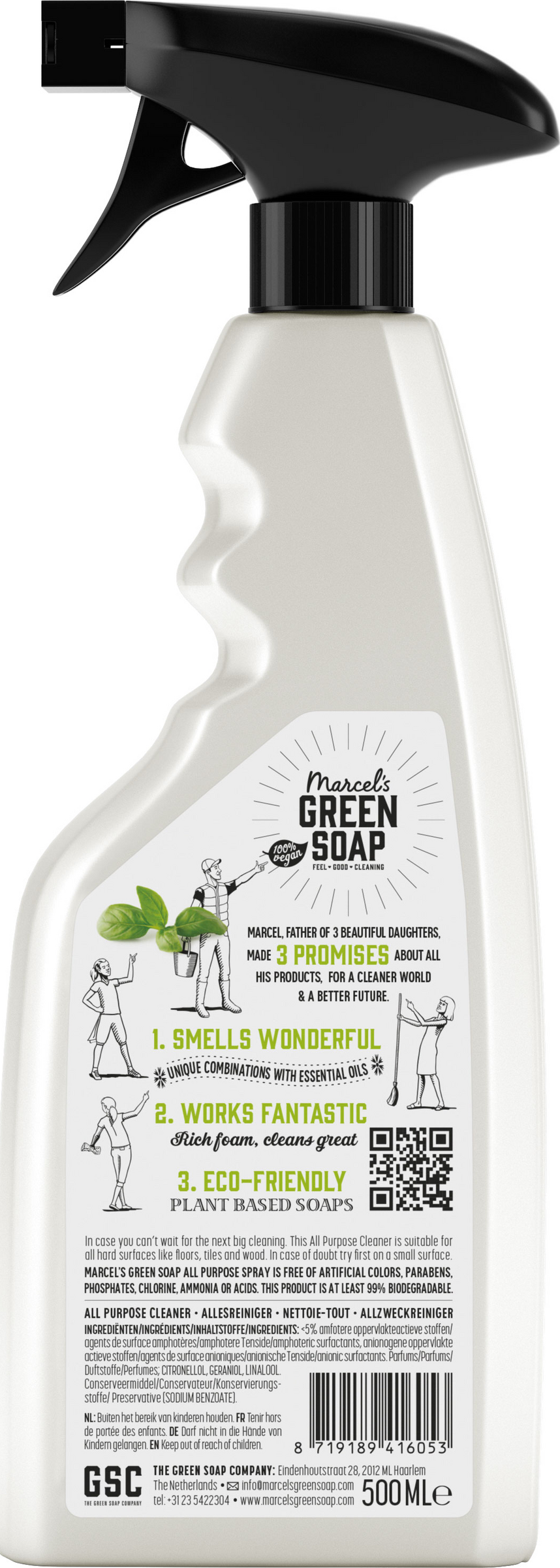 Im Gegensatz zu herkömmlichen Allzweckreinigern sind die nachhaltigen Allzweckreiniger von Marcel vollgepackt mit natürlichen Inhaltsstoffen. Sie verwenden beispielsweise pflanzliche, natürliche, biologisch abbaubare und sichere Chemikalien im Gegensatz zu Petrochemikalien, Kunststoffen und Chemikalien. Wie alle Produkte von Marcel's Green Soap enthält auch dieser Allzweckreiniger keine Parabene, Säuren, Ammoniak, Chlor und Farbstoffe: alle Stoffe, die für die Umwelt, Ihr Zuhause oder Ihren Körper schädlich sein können. So arbeiten sie gemeinsam an einem saubereren Planeten!