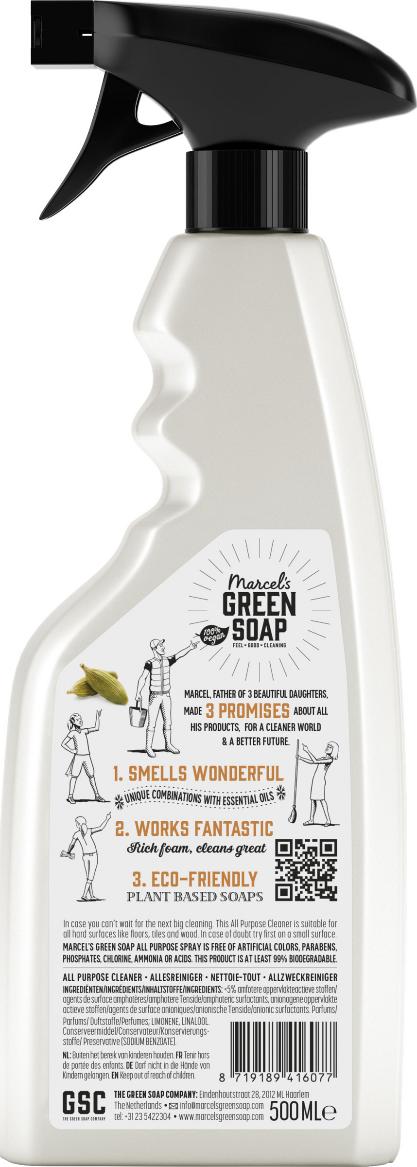 Im Gegensatz zu herkömmlichen Allzweckreinigern sind die nachhaltigen Allzweckreiniger von Marcel vollgepackt mit natürlichen Inhaltsstoffen. Sie verwenden beispielsweise pflanzliche, natürliche, biologisch abbaubare und sichere Chemikalien im Gegensatz zu Petrochemikalien, Kunststoffen und Chemikalien. Wie alle Produkte von Marcel's Green Soap enthält auch dieser Allzweckreiniger keine Parabene, Säuren, Ammoniak, Chlor und Farbstoffe: alle Stoffe, die für die Umwelt, Ihr Zuhause oder Ihren Körper schädlich sein können. So arbeiten sie gemeinsam an einem saubereren Planeten!