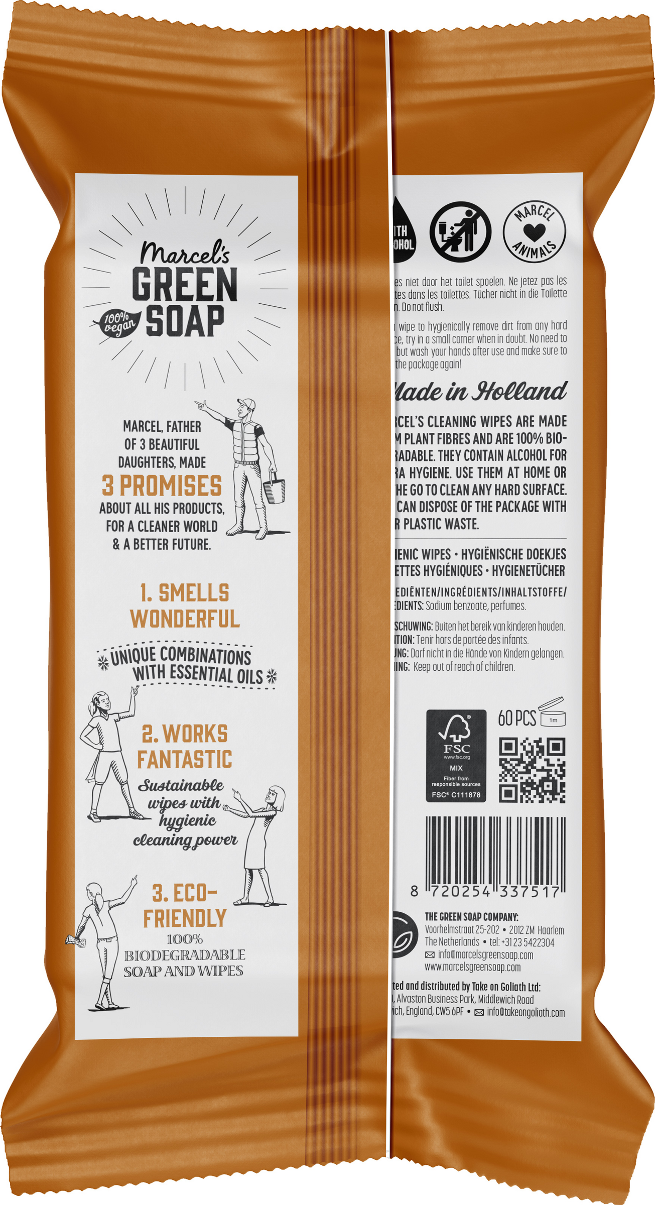 Mit den hygienischen Reinigungstüchern von Marcel's Green Soap können Sie Ihr Zuhause in einem Schwung reinigen. Hergestellt aus pflanzlichen Fasern und 100% biologisch abbaubar. Jede Packung enthält 60 Tücher.