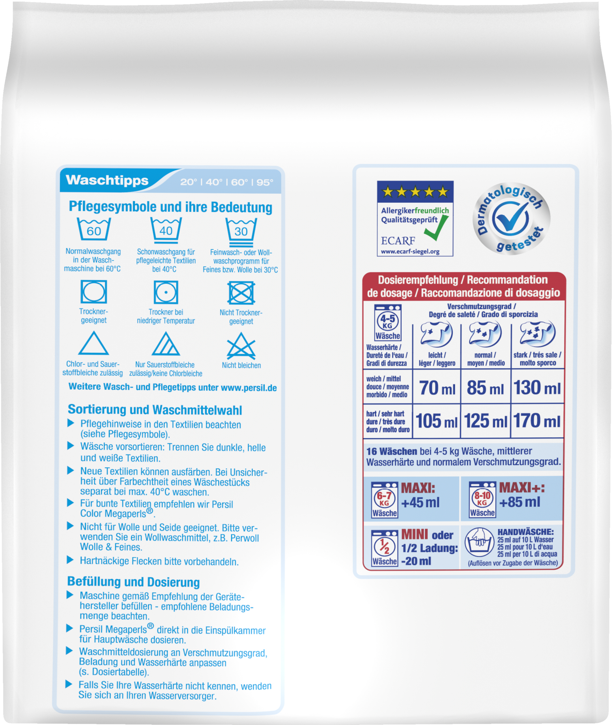 - dermatologisch getestet* und ECARF-zertifiziert**