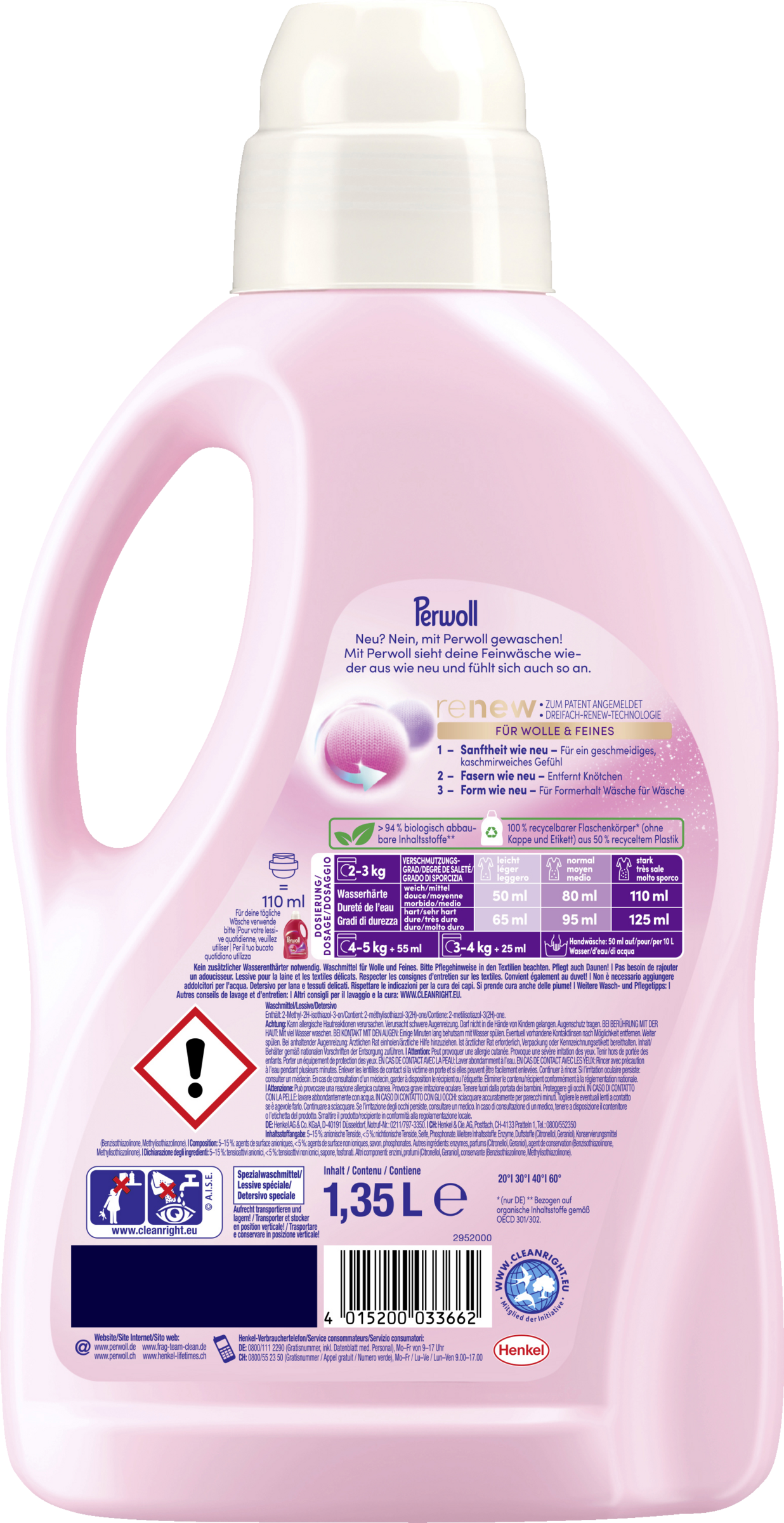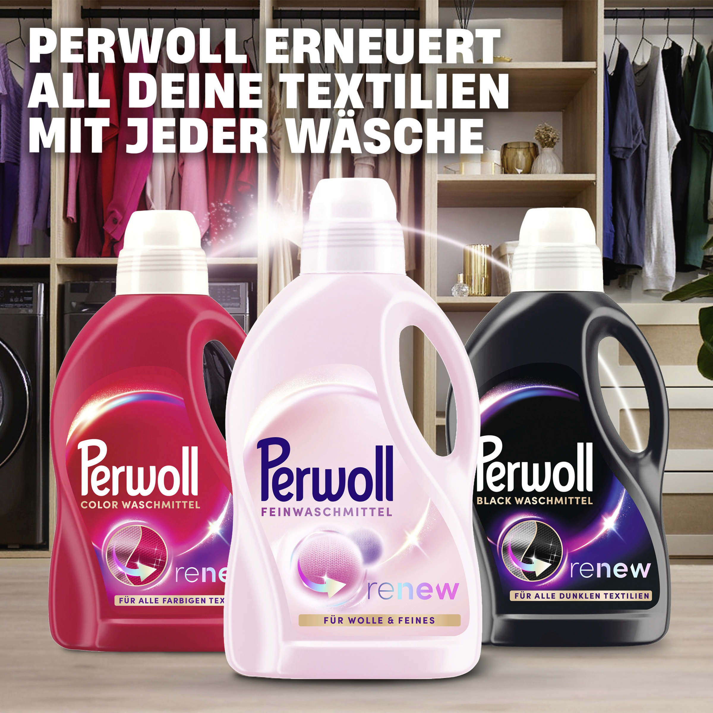 - PERWOLL Feinwaschmittel – Das flüssige Waschmittel mit Dreifach-Renew-Technologie pflegt Wolle, Kaschmir & Seide – für Wäsche, die aussieht, sich anfühlt und duftet wie neu