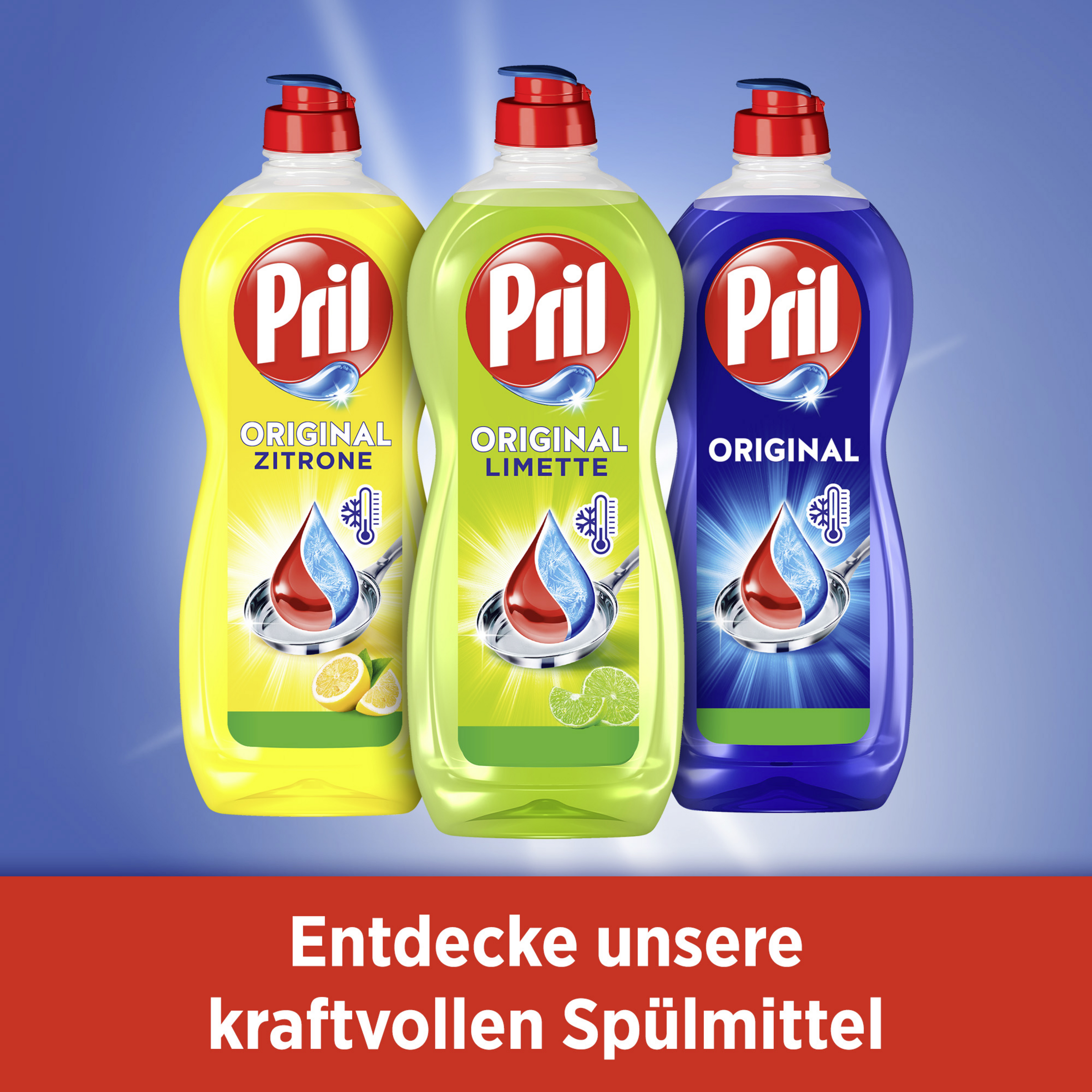 PRIL Original Limette mit Kalt-Aktiv-Formel – Spüle mit Kaltwasser, spare Energie Das PRIL Original Limette Handspülmittel mit Kalt-Aktiv-Formel und höchster Fettlösekraft entfernt beim Geschirrspülen Fett, Stärke und eingetrocknete Speisereste wie von selbst – für strahlend sauberes Geschirr. Dank Kalt-Aktiv-Formel wirkt es auch bei niedrigen Temperaturen. Spüle mit kaltem Wasser und spare Energie.Der Flaschenkörper des Spülmittels besteht zu 100% aus recyceltem Plastik, davon 50% Plastik aus dem Gelben Sack und ist vollständig recycelbar. Die Produktvorteile im Detail: