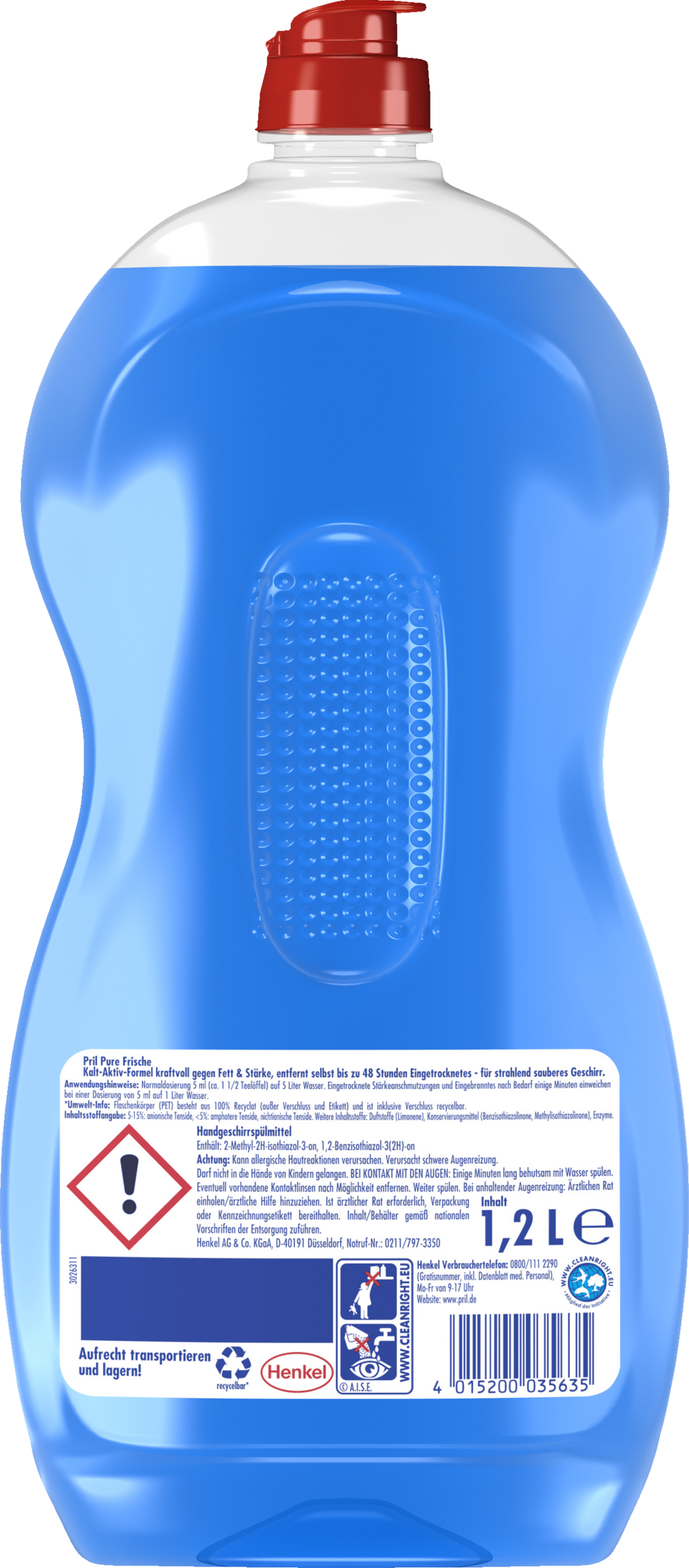 Das PRIL Original Pure Frische Handspülmittel mit Kalt-Aktiv-Formel und höchster Fettlösekraft entfernt beim Geschirrspülen Fett, Stärke und eingetrocknete Speisereste wie von selbst – für strahlend sauberes Geschirr. Dank Kalt-Aktiv-Formel wirkt es auch bei niedrigen Temperaturen. Spüle mit kaltem Wasser und spare Energie. Der Flaschenkörper des Spülmittels besteht zu 100 % aus recyceltem Plastik, davon 50 % Plastik aus dem Gelben Sack und ist vollständig recycelbar.Die Marke Pril.