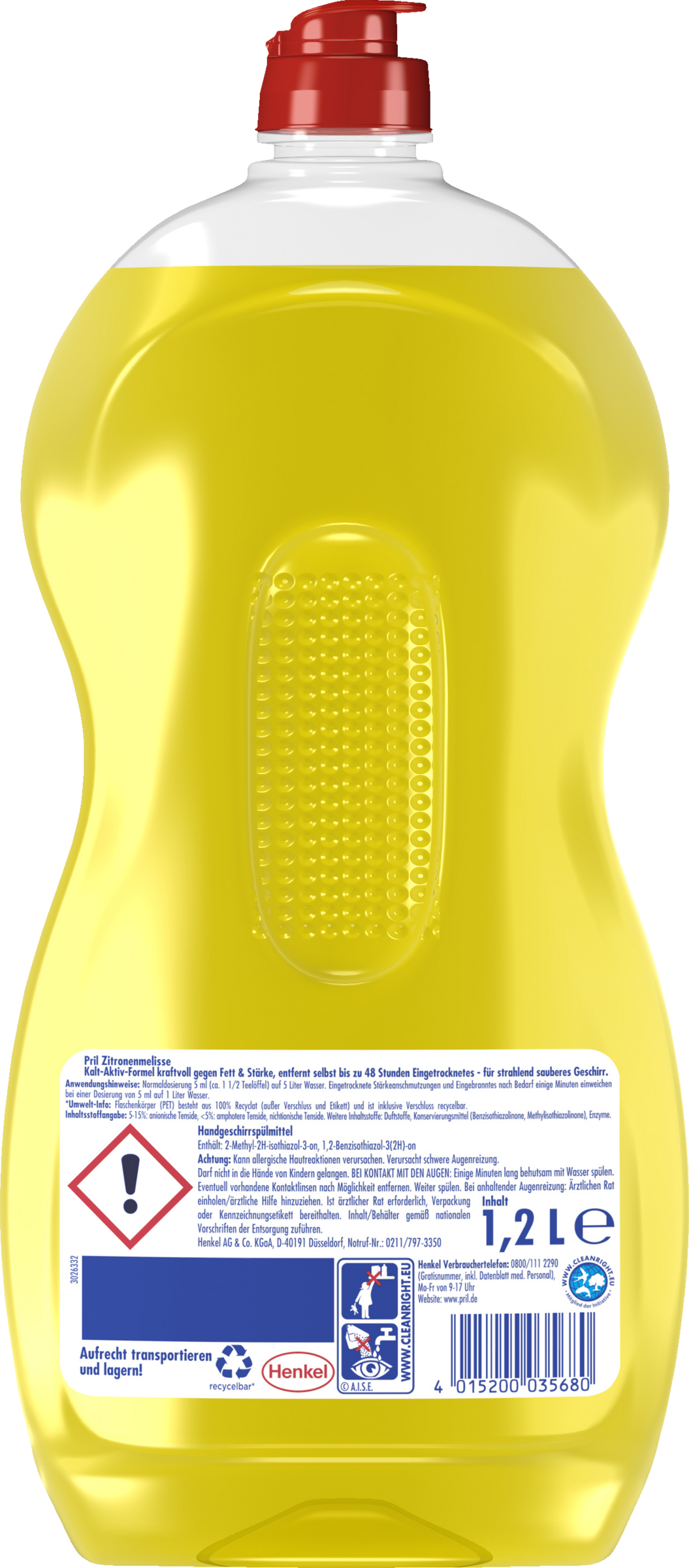 PRIL Original Zitronenmelisse mit Kalt-Aktiv-Formel – Spüle mit Kaltwasser, spare Energie Das PRIL Original Zitronenmelisse Handspülmittel mit Kalt-Aktiv-Formel und höchster Fettlösekraft entfernt beim Geschirrspülen Fett, Stärke und eingetrocknete Speisereste wie von selbst – für strahlend sauberes Geschirr.Dank Kalt-Aktiv-Formel wirkt es auch bei niedrigen Temperaturen. Spüle mit kaltem Wasser und spare Energie. Der Flaschenkörper des Spülmittels besteht zu 100% aus recyceltem Plastik, davon 50% Plastik aus dem Gelben Sack und ist vollständig recycelbar. Die Produktvorteile im Detail: Hohe Fettlösekraft Selbstaktiv gegen Fett & Stärke Frischer Duft nach Zitronenmelisse Kaltaktive Formel Effizient dank konzentrierter Formel Flaschenkörper aus 100% recyceltem Plastik, davon 50% aus dem Gelben Sack Flasche vollständig recyclebar.
