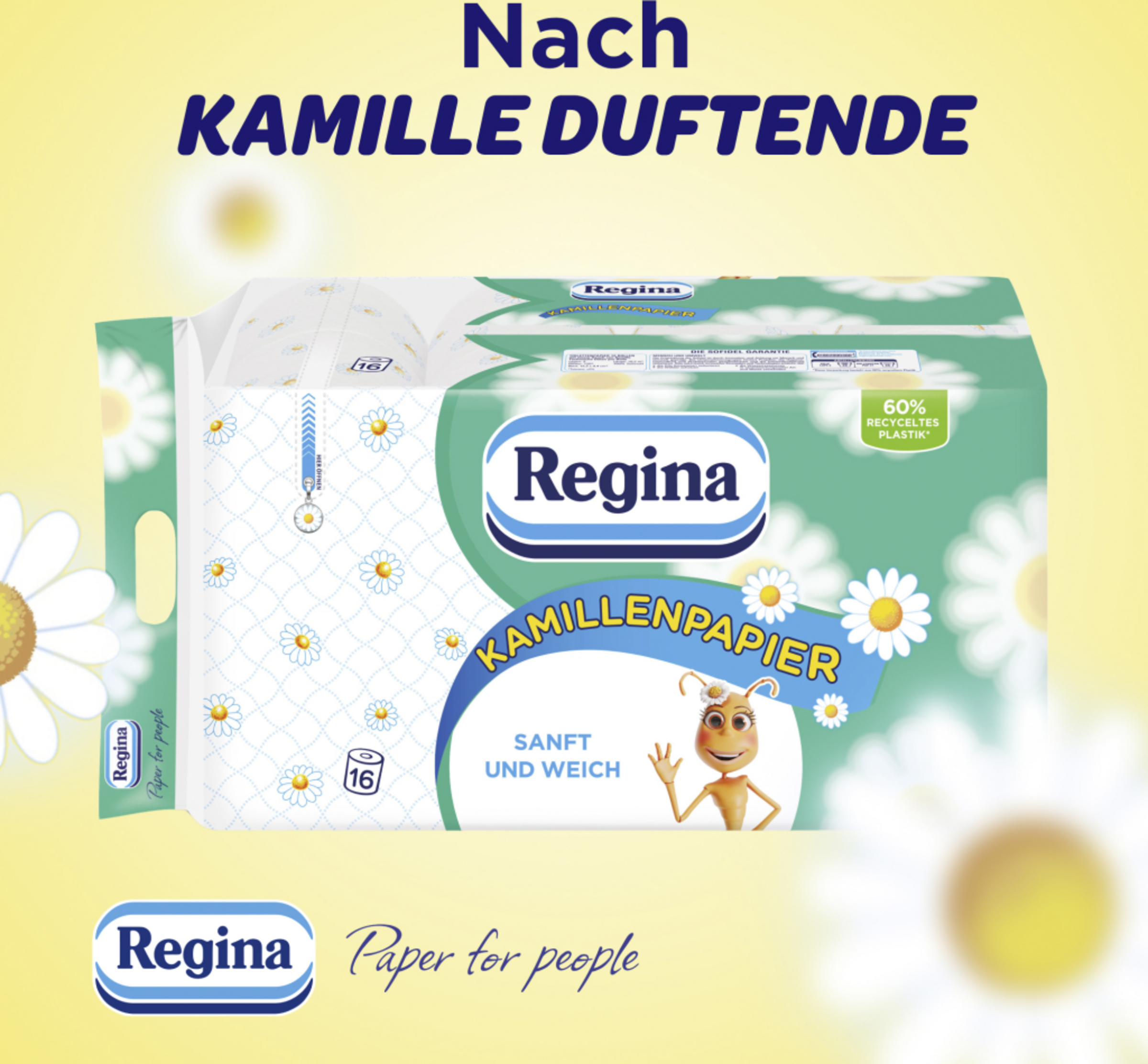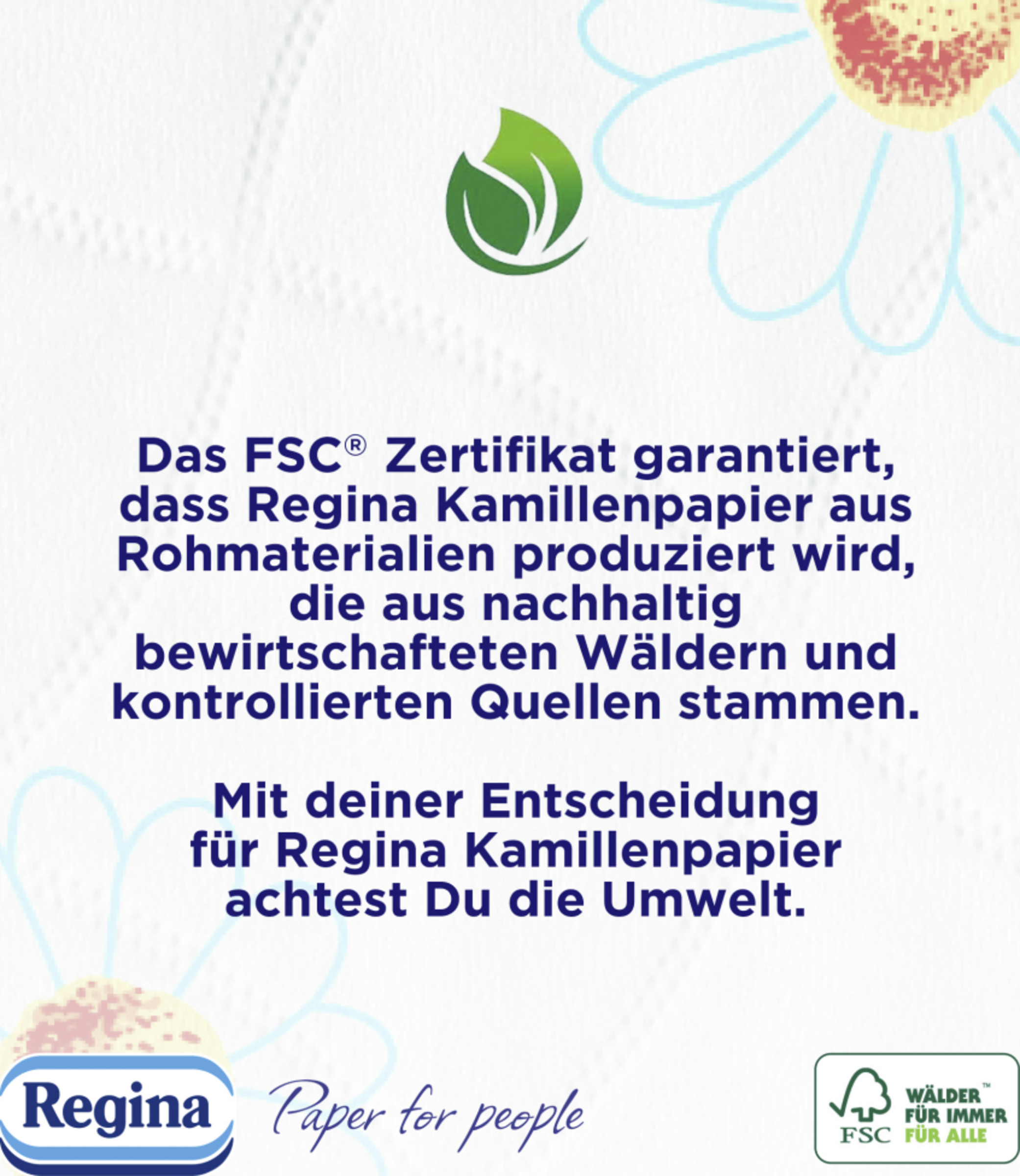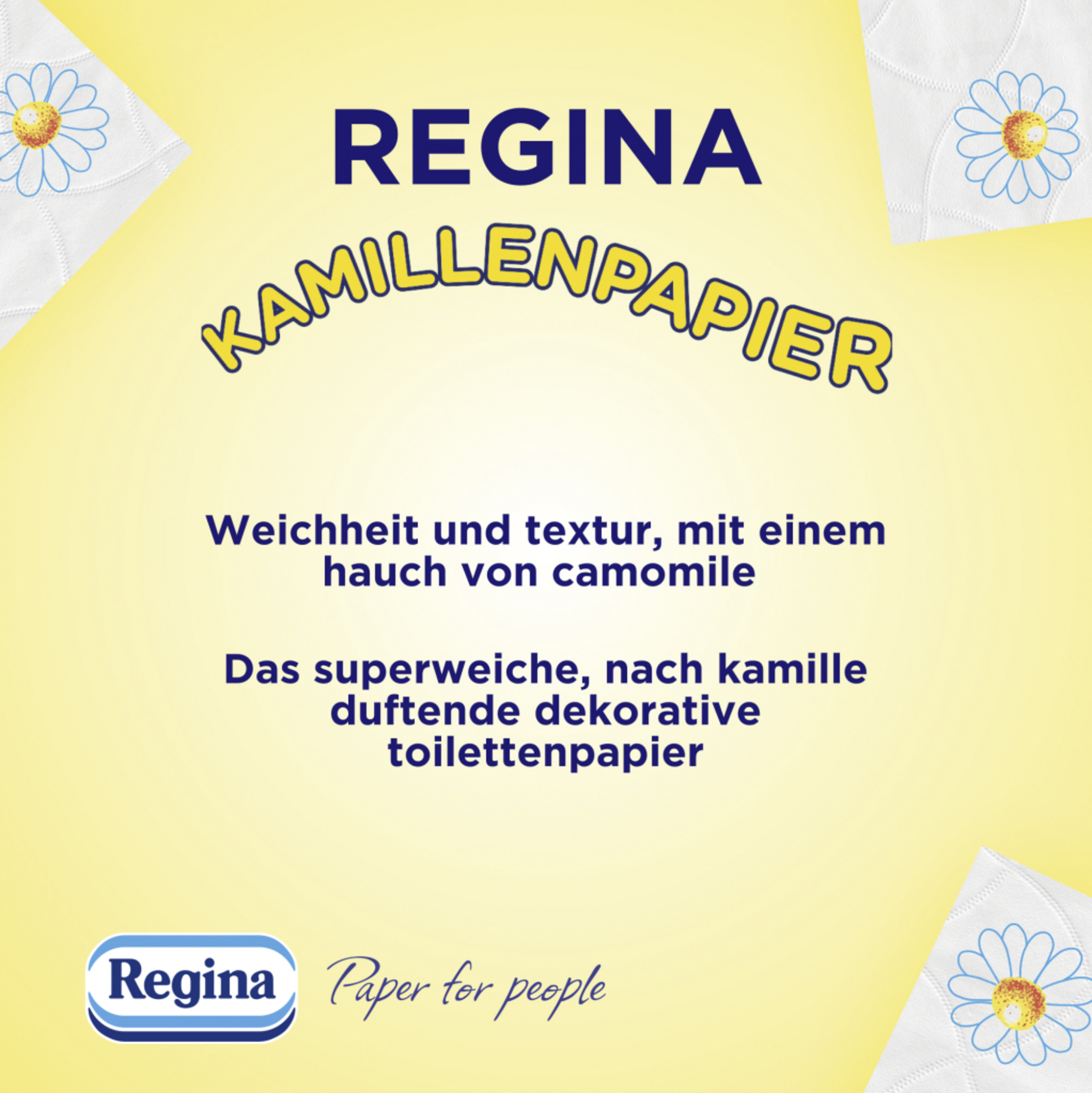 Mehr als nur Papier… Jedes Blatt Regina ist ein Versprechen: Regina will dein Leben ein Stück leichter machen und all jene unterstützen, die an eine grünere Zukunft glauben. Dank der Stärke, Weichheit und Qualität unserer Haushalts- und Hygienepapiere ist Regina seit über 30 Jahren in ganz Europa erfolgreich in Haushalten etabliert. Regina – Papier für Menschen.