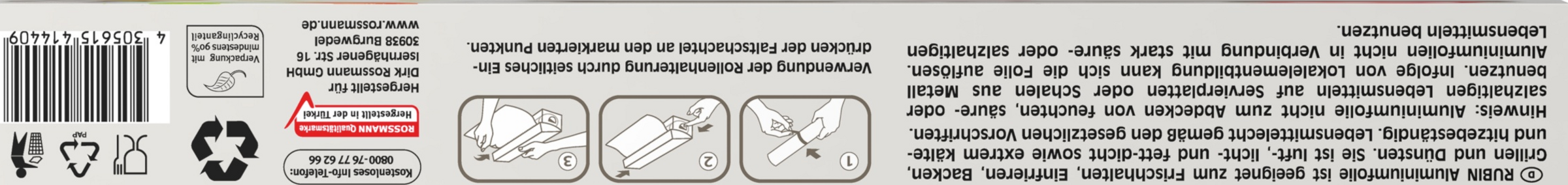 RUBIN Aluminiumfolie ist geeignet zum Frischhalten, Einfrieren, Backen, Grillen und Dünsten. Sie ist luft-, licht- und fettdicht sowie extrem kälte- und hitzebeständig. Lebensmittelecht gemäß den gesetzlichen Vorschriften.