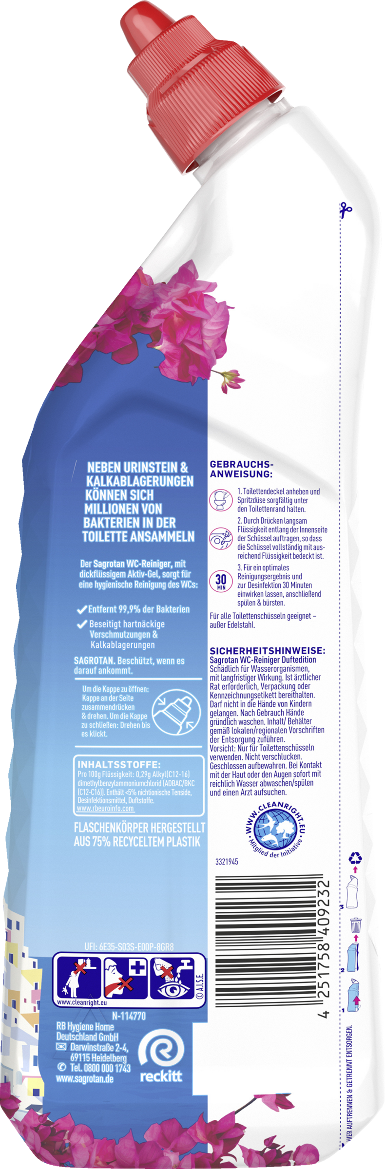 Sagrotan ist seit über 100 Jahren Ihr Experte für hygienische Sauberkeit und den Schutz Ihrer Familie, jeden Tag. Unser Anspruch ist es, einen Beitrag zu einem gesunden Leben zu leisten. Damit Sie sich in Ihrem Zuhause geschützt fühlen. Daher bieten Sagrotan Reinigungsprodukte mehr als nur Sauberkeit. Sie reinigen effektiv, entfernen Schmutz und desinfizieren zugleich. Zurück bleiben glänzende Oberflächen, ein frischer Duft und hygienische Sauberkeit im ganzen Haus.