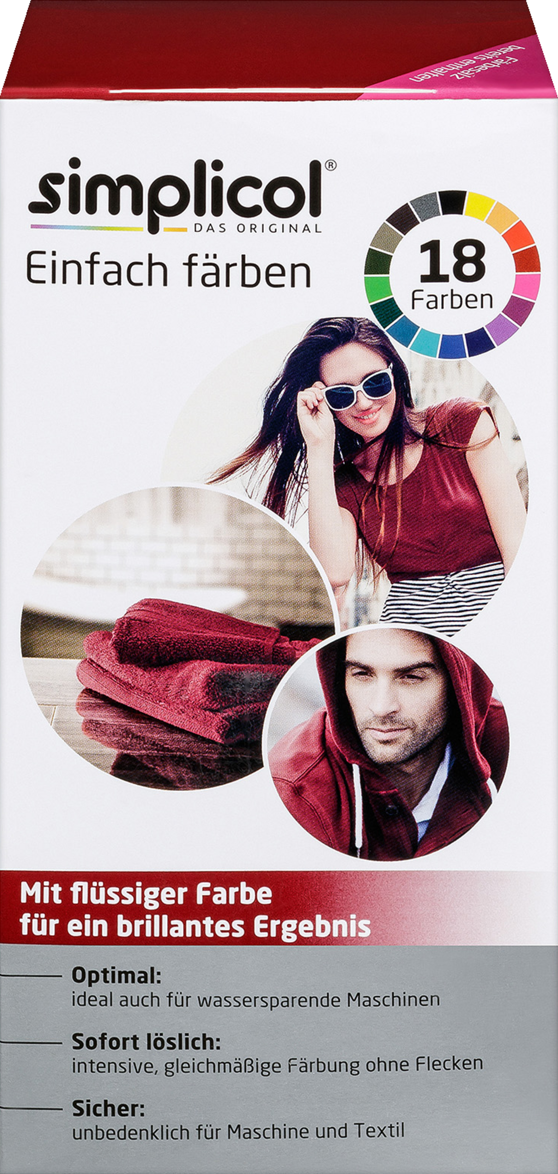 Färbe dir edle Schmuckstücke. Lasse Kleidung und Stoffe in einem tiefen Rubin-Rot funkeln. Zum Färben wendest du die Komplettpackung einfach in der Waschmaschine an.