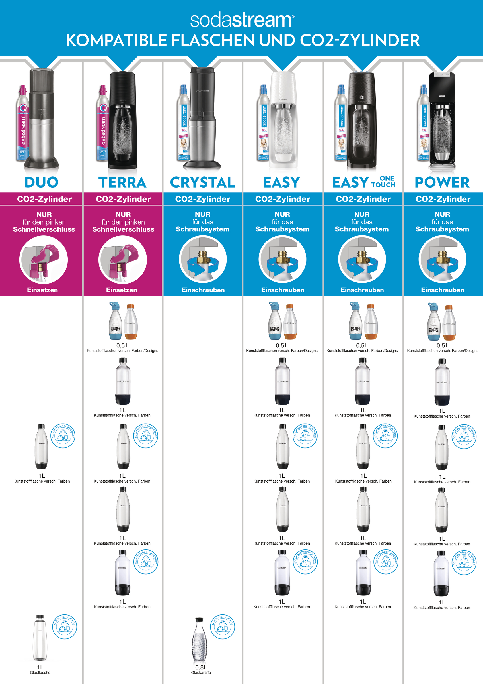 Der SodaStream® DUO™ Wassersprudler ist die neuste Innovation mit der Sie ganz einfach frisches Wasser in Kunststoffflaschen für unterwegs und in eleganten Glasflaschen für zu Hause selber sprudeln – und das ganz ohne Schleppen!