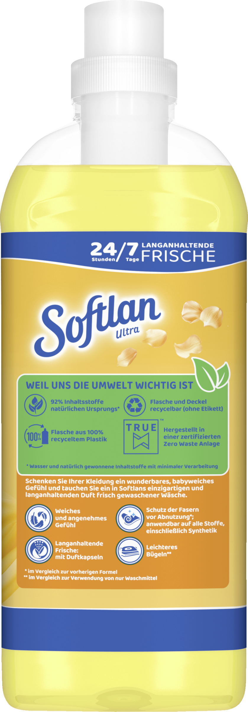 Mit seiner revolutionären 3D-Technologie, der besonderen Kombination aus drei verschiedenen Technologien, erfindet Softlan das Durfterlebnis für Wäsche neu - für ein außergewöhnliches Dufterlebnis wie nie zuvor***. Softlan sorgt für eine gleichbleibende Duftintensität - Ihre Kleidung duftet auch noch nach Wochen wie frisch gewaschen. Erfüllen Sie Ihr Zuhause mit dem wunderbaren Duft frisch gewaschener Wäsche direkt beim Öffnen der Waschmaschine. Geben Sie bei jeder Bewegung nach und nach Parfüm frei und sorgen so für ein unvergleichliches Dufterlebnis, das lange anhält.