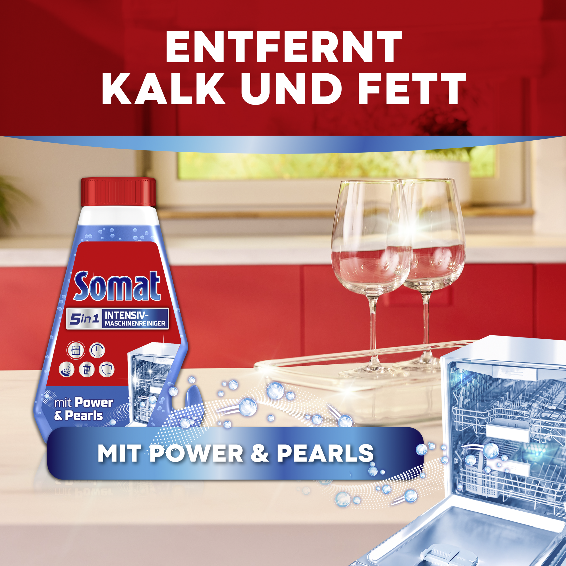 - intensive Spülmaschinenreinigung – Die leistungsstarke Formel mit Power Pearls reinigt intensiv auch die schwer zugänglichen Teile des Geschirrspülers und verlängert so seine Lebensdauer