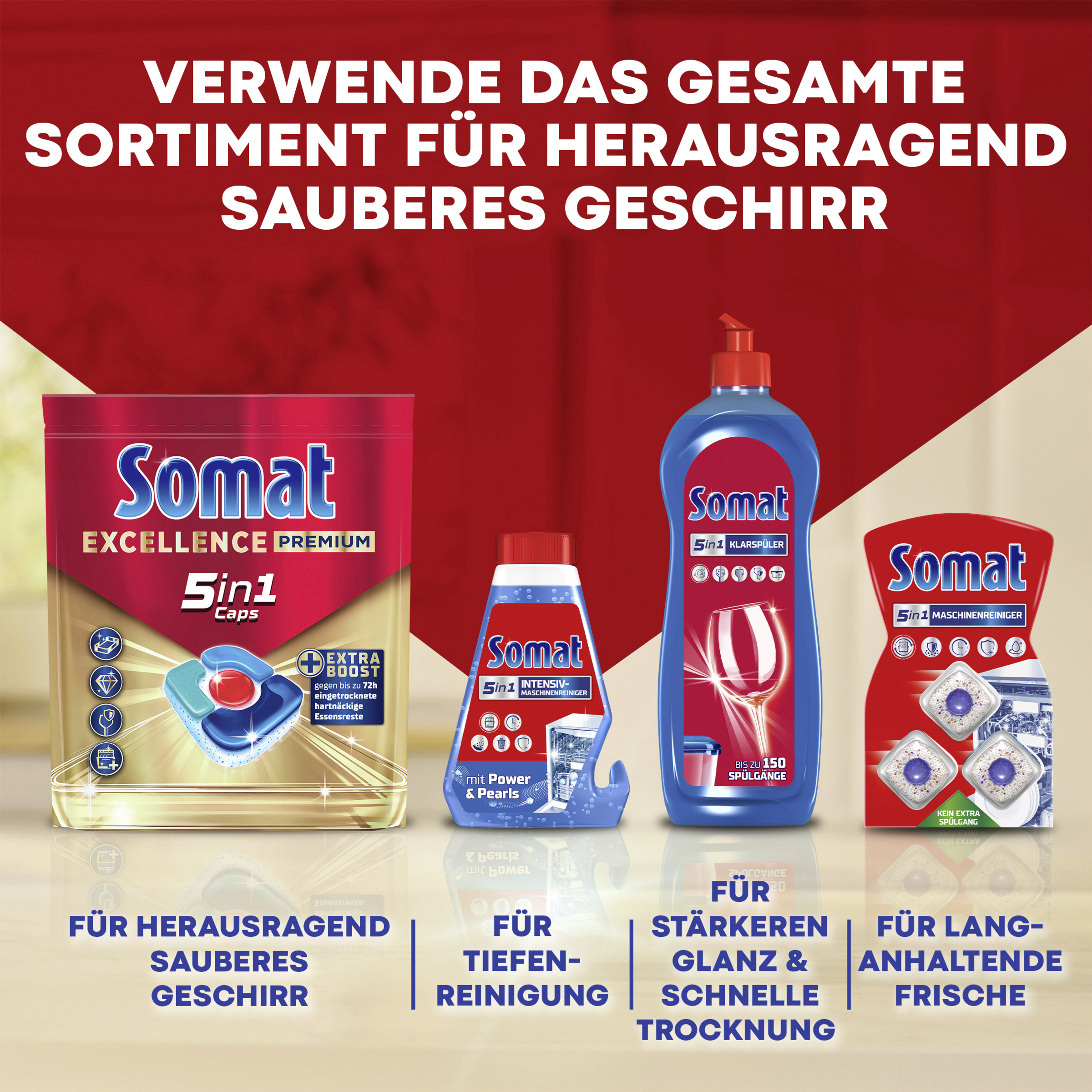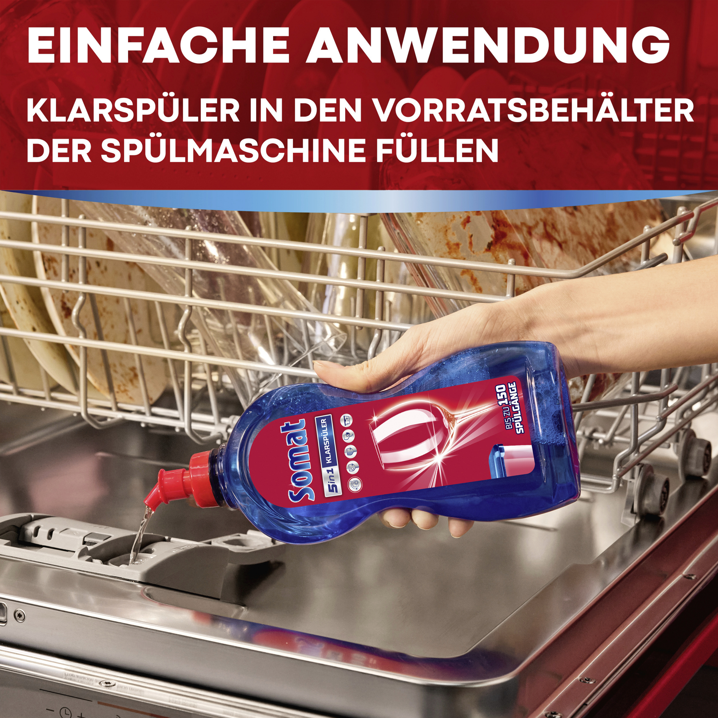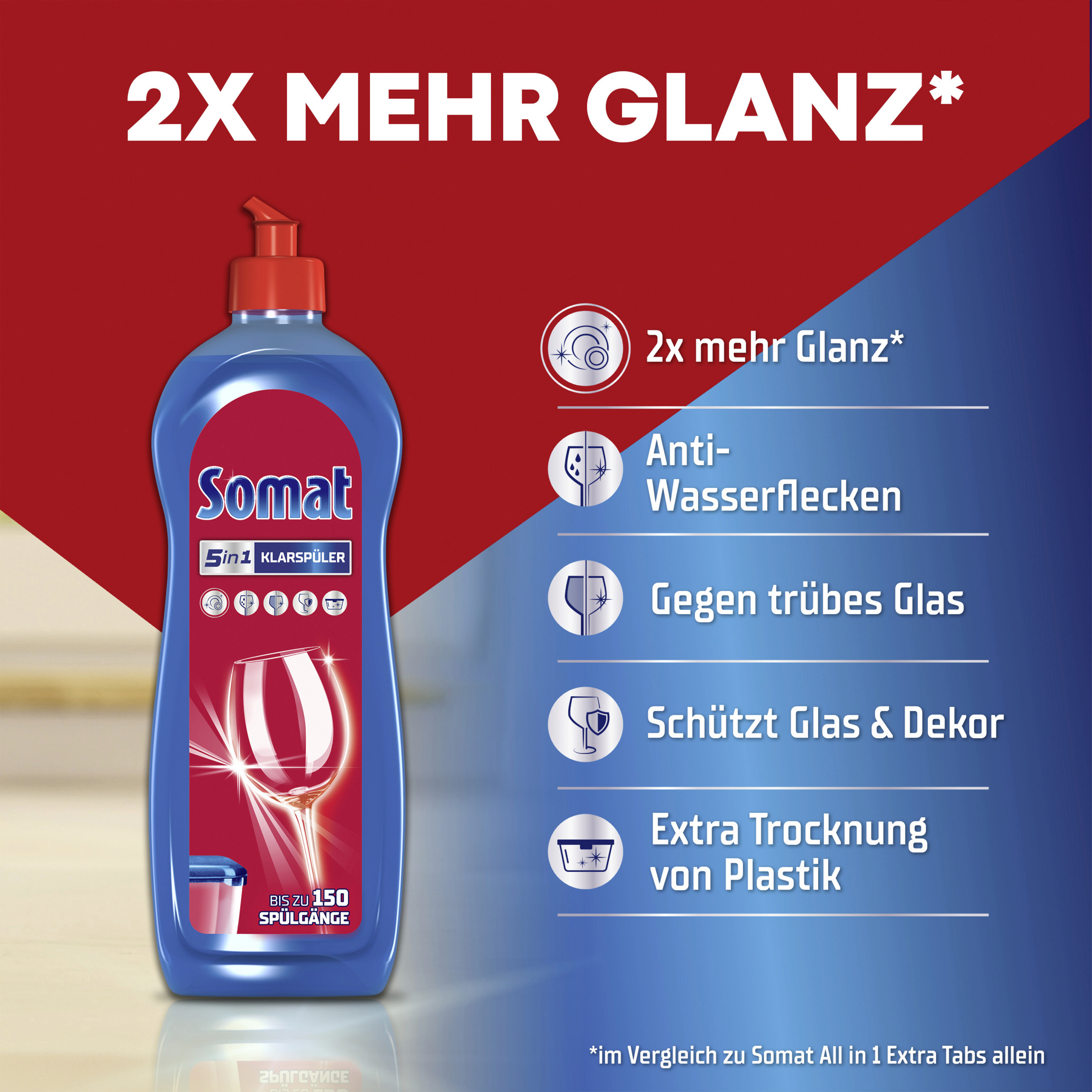 - stärkerer Glanz – Der Somat Klarspüler verleiht Gläsern, Geschirr und Maschine mit jedem Spülgang einen brillanten Glanz