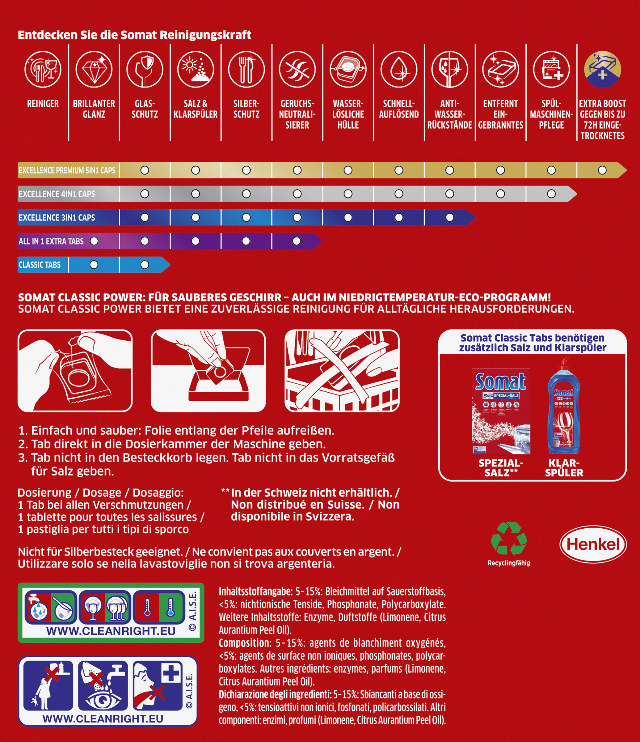 Somat Classic Power Spül Tabs – täglich sauberes Geschirr, auch im Niedrigtemperatur-, Eco- oder Kurz-Programm!