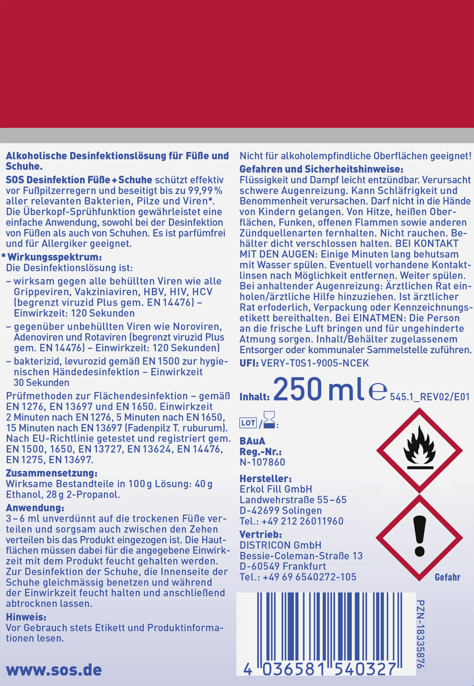 SOS Desinfektion Füße + Schuhe schützt effektiv vor Fußpilzerregern und beseitigt bis zu 99,99 % aller relevanten Bakterien, Pilze und Viren*.